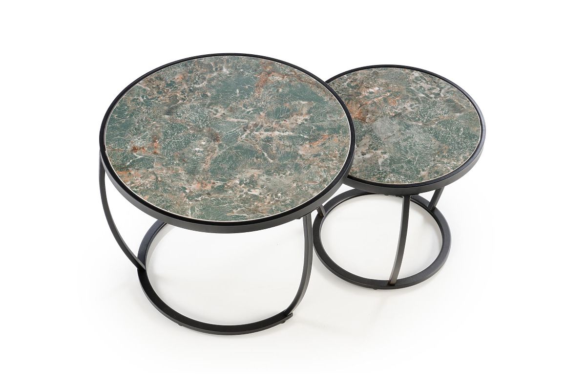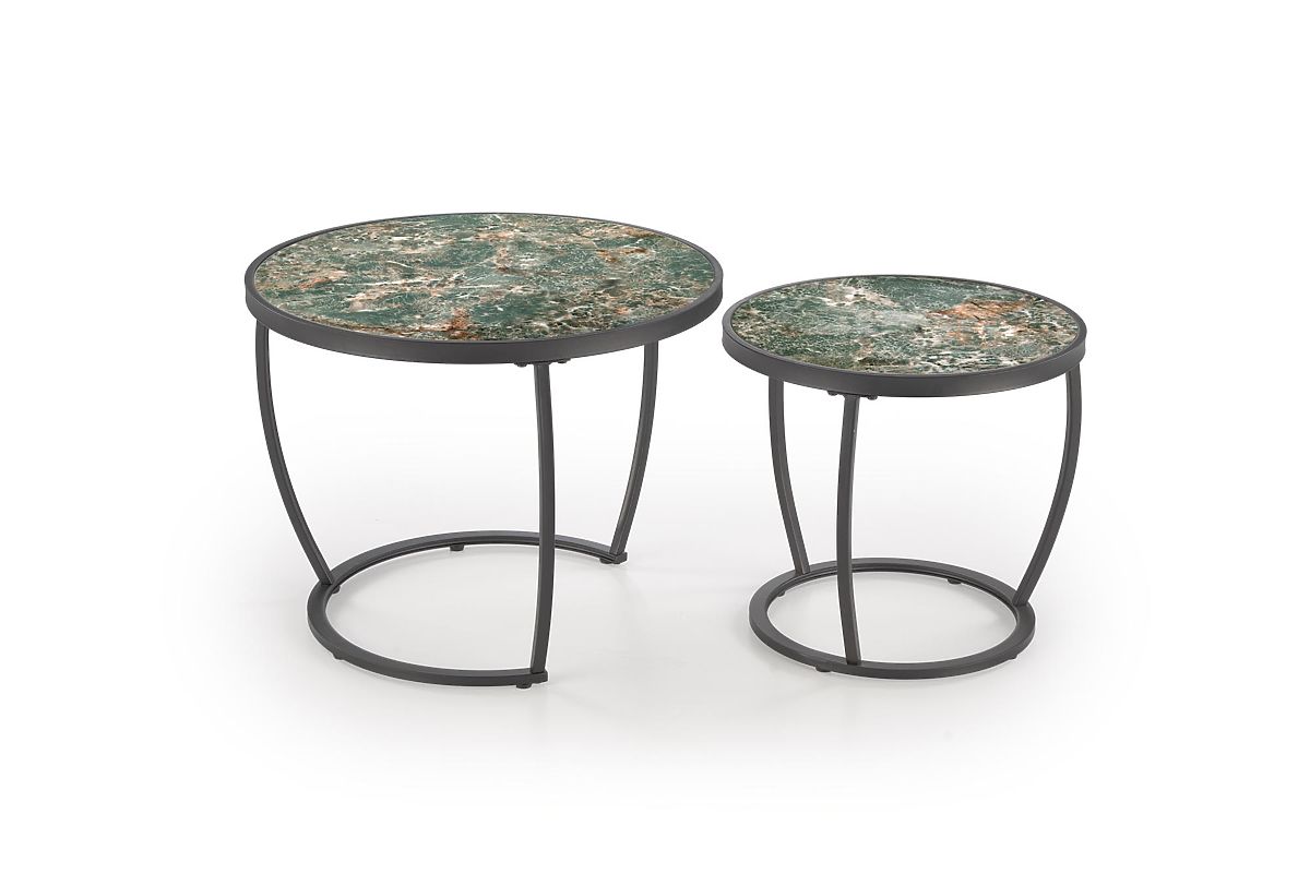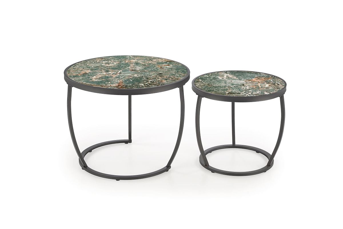 Lukafurniture.cz » Stoly a stolky / Konferenční stolky / INES sada 2 stolků, zelený mramor / černá (1p=1set)
