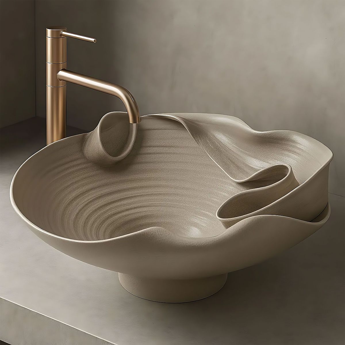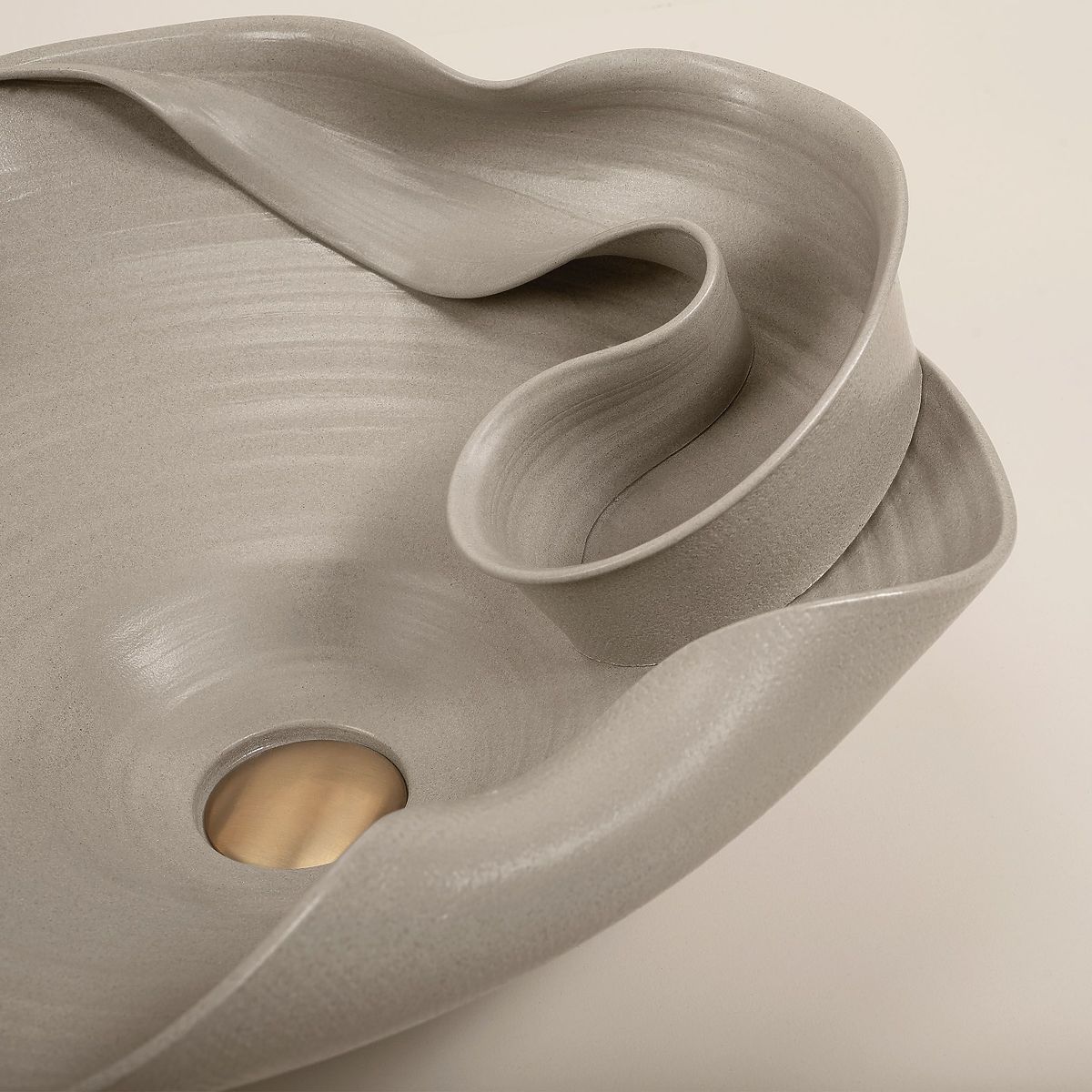 Představované umyvadlo je novinkou v nabídce značky Rea – Koupelna s Představivostí, navržené pro osoby hledající výjimečné tvary a autentické řemeslo. Patří do kolekce Hand Made Art – série, ve které je každý kus ručně vyráběn s plnou péčí o detail. Absence sériové výroby zajišťuje, že každé umyvadlo se jemně liší tvarem a texturou, zachovávajíc unikátní charakter. Tento model je odvážnou formou inspirovanou pohybem a napětím materiálu. Spirálové zlomy připomínají přirozené deformace skály, vlnu nebo svinutý keramický plát. Výrazný, téměř sochařský tvar činí z umyvadla centrální bod koupelny – nejen funkční, ale i umělecký. Surová textura, šedo-béžová barva a matný povrch tvoří harmonický celek s moderními materiály: betonem, ocelí, kamenem a sklem. Je to nabídka pro ty, kteří očekávají více – originalitu, kvalitu a formu, která nezůstává lhostejná.