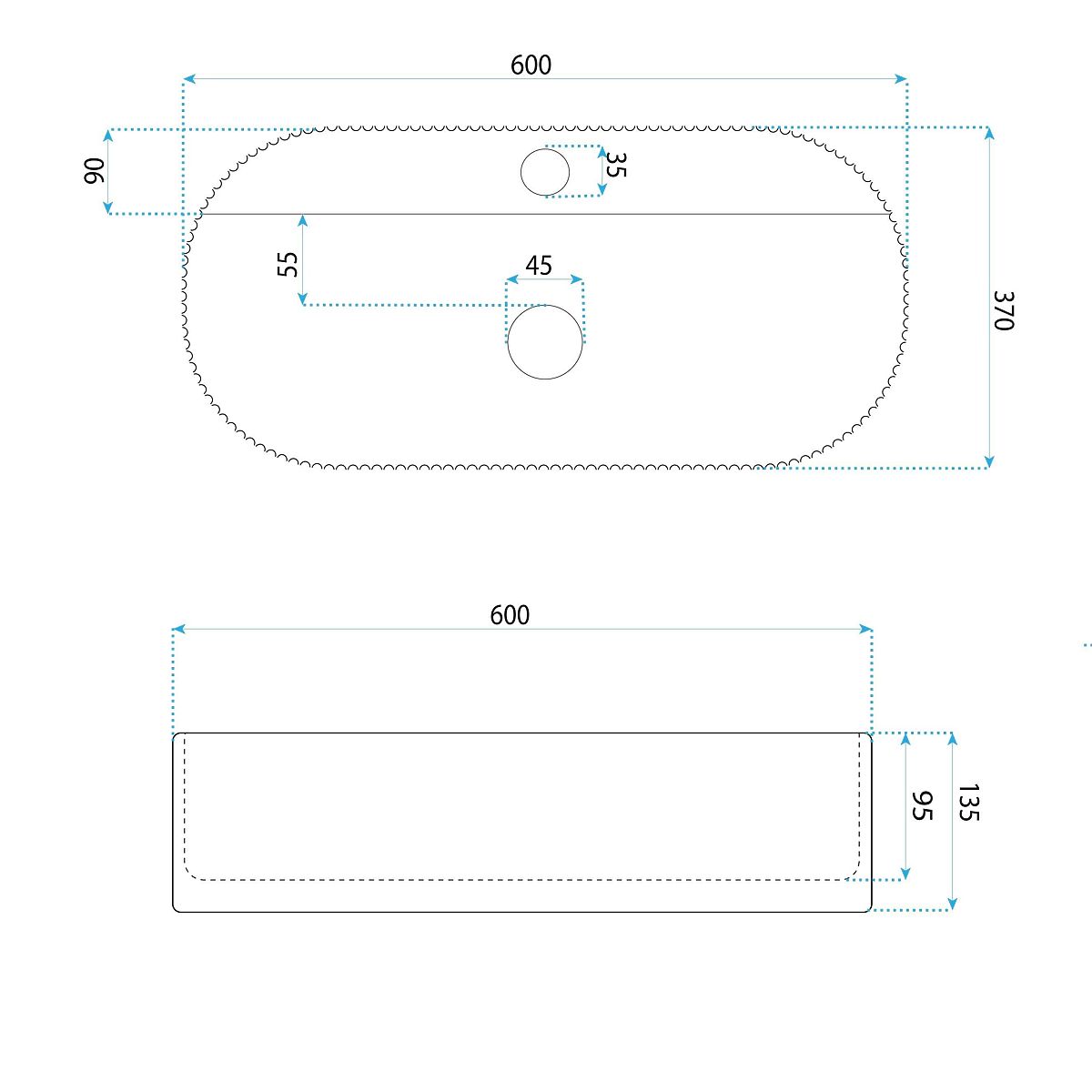 Model je přizpůsoben pro montáž na desku nebo koupelnovou skříňku, což umožňuje volné uspořádání prostoru. Má standardní odtokový otvor a otvor pro baterii, což umožňuje snadné přizpůsobení vhodného příslušenství. Tento typ umyvadla se skvěle hodí jak do koupelen zařízených v moderním, skandinávském, tak i klasickém stylu.