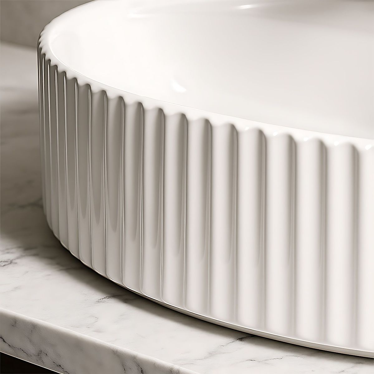 Nadčasové umyvadlo Marcela s rýhováním je elegantním spojením funkčnosti a moderního designu. Vyrobeno z vysoce kvalitní sanitární keramiky, vyznačuje se trvanlivostí, odolností proti poškrábání a snadnou údržbou. Jeho oválný tvar s dekorativními, vertikálními rýhováními na vnějších stěnách dodává interiéru jedinečný charakter a jemnou texturu, která podtrhuje styl uspořádání.