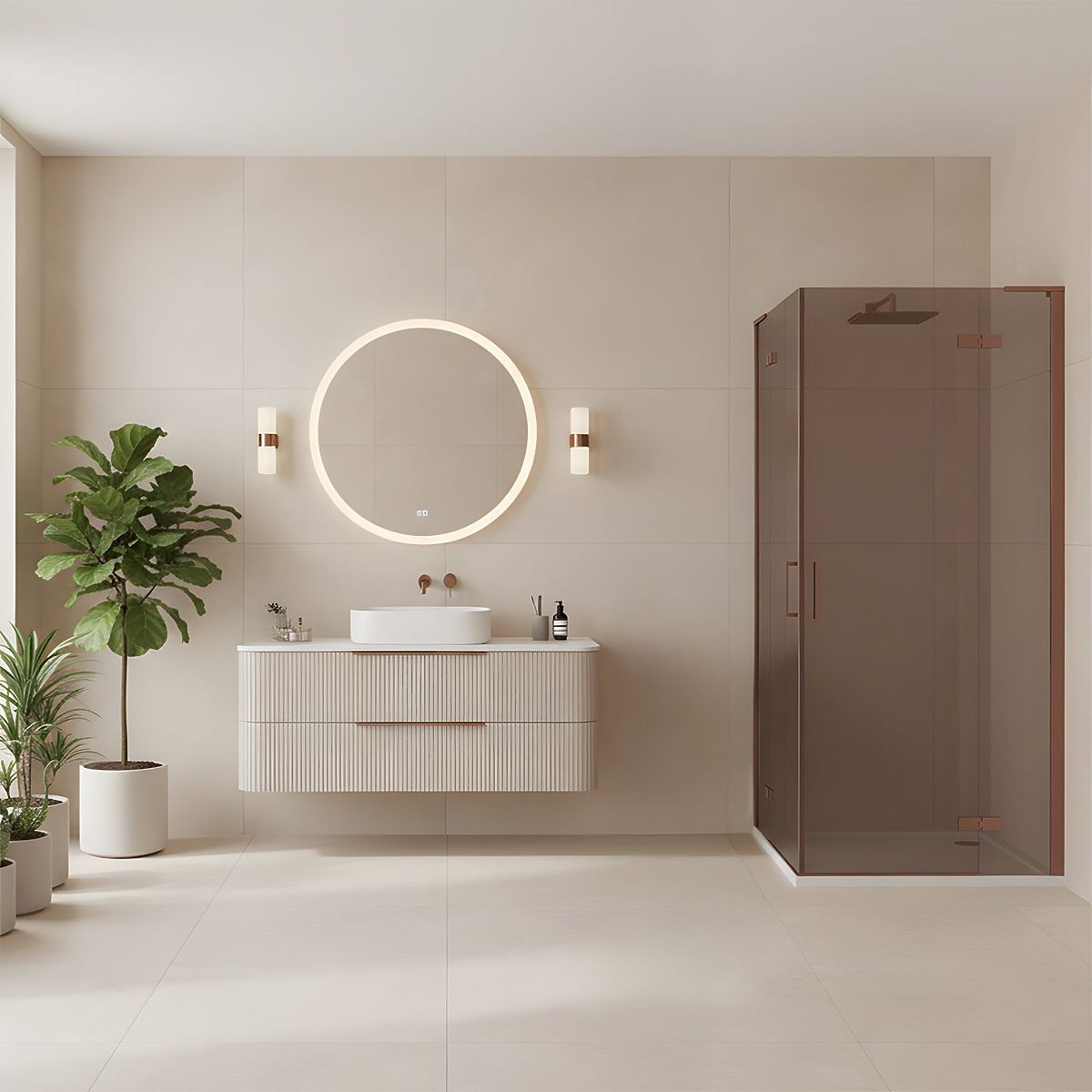 Sprchový kout Hugo Double je moderní řešení, které spojuje eleganci a funkčnost. Vyroben z tvrzeného, kouřového skla v hnědém odstínu a zakončen profily v barvě kartáčované mědi, představuje výjimečný prvek každé koupelny, podtrhující její luxusní charakter.