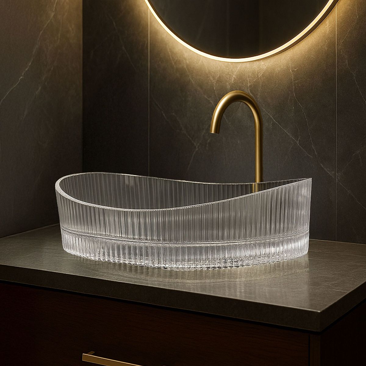 Model Harper spojuje estetiku s funkčností – pevné sklo je odolné vůči každodennímu používání a hladký povrch uvnitř mísy usnadňuje udržování čistoty. Je přizpůsobeno pro montáž na desku nebo skříňku, což poskytuje plnou svobodu v uspořádání. Jeho moderní design se dokonale hodí k armaturám ve zlatých, černých nebo chromových odstínech, což umožňuje vytvořit jednotný a efektní prostor.