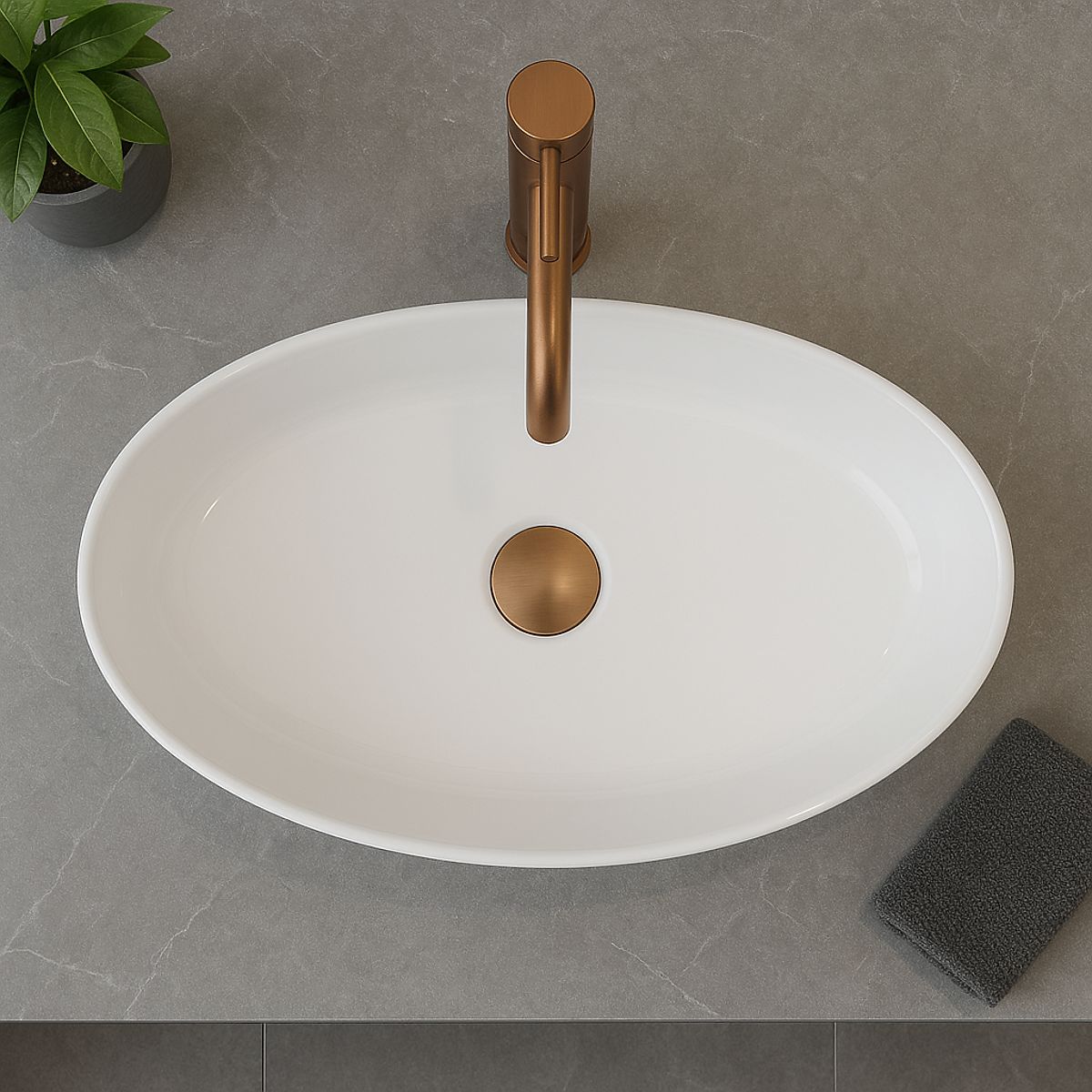 Nadstavný umyvadlo ADRIANA je elegantní model vyrobený z vysoce kvalitní sanitární keramiky, který dokonale spojuje moderní design s funkčností. Jeho oválný tvar se skvěle hodí do prostor jak minimalistických, tak klasických. Lesklý bílý povrch dodává interiéru svěžest a estetiku, a zároveň zajišťuje snadnou údržbu čistoty.
