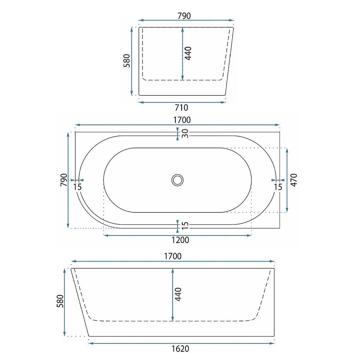 Akrylátová Rohová Vana BELLANTO SLIM 170 Pravá