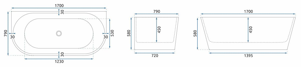 Akrylátová přístěnná vana OLIMPIA 170 cm