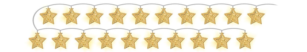 Sada světýlek se skládá z 20 visících LED hvězdiček o průměru 4,5 cm. Celková délka girlandy je 3 metry.
