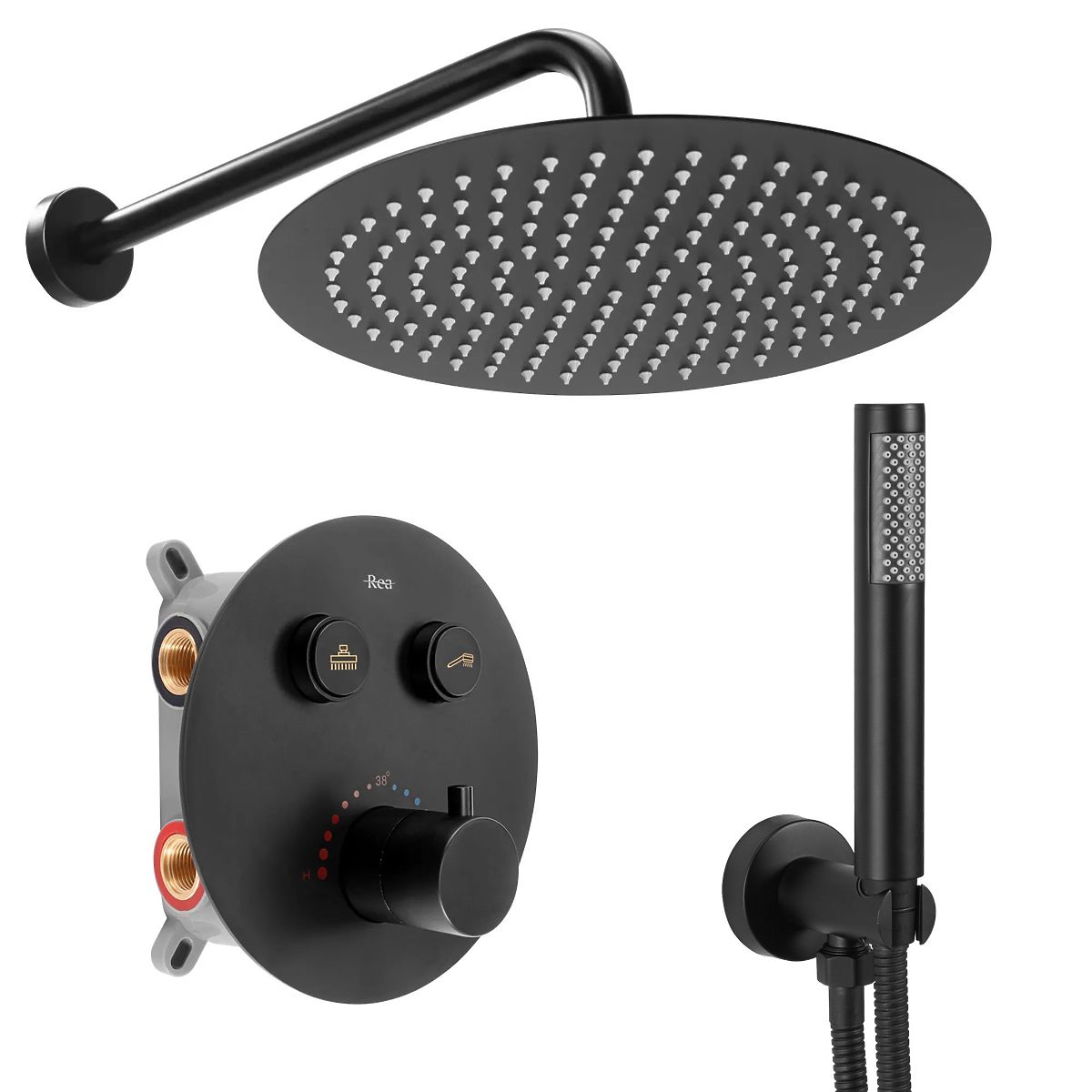 Podomítková sprchová sada s termostatem LUNGO Černá + BOX