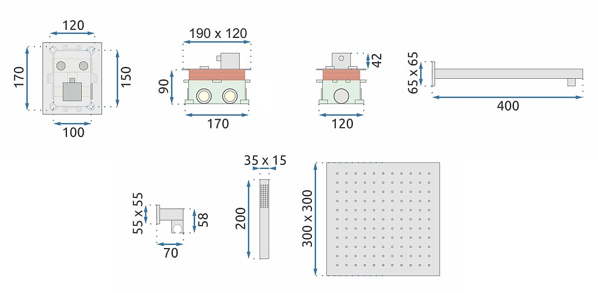 Podomítková sprchová sada s termostatem FENIX DAVIS Zlatá + BOX