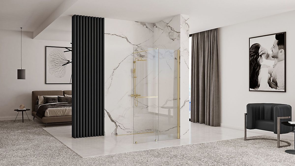 Neobyčejný vizuální efekt – jednoduché a funkční řešení, které díky posuvnému mechanismu otevírání zabírá velmi málo místa.