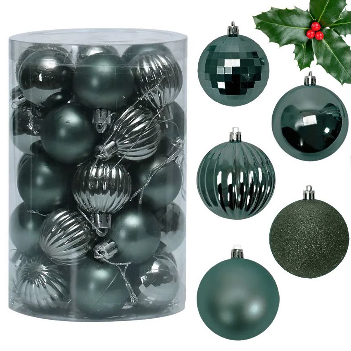 Představujeme vám sadu vánočních koulí z plastu s různorodým povrchem, díky čemuž ozvláštní vzhled vašeho vánočního stromku. Koule vypadají skvěle na stromku a jsou odolné proti rozbití, což vám umožní prožít klidné svátky bez obav o vánoční dekorace. Vytvořte atmosféru kouzla Vánoc, kterou pocítí všichni.