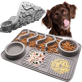 Podložka pro psy zpomalující jídlo je speciálně navržené příslušenství, které umožňuje zvířatům pomalejší konzumaci jídel. Je vyrobena z vysoce kvalitních materiálů, které jsou bezpečné pro psy a snadno se čistí.
