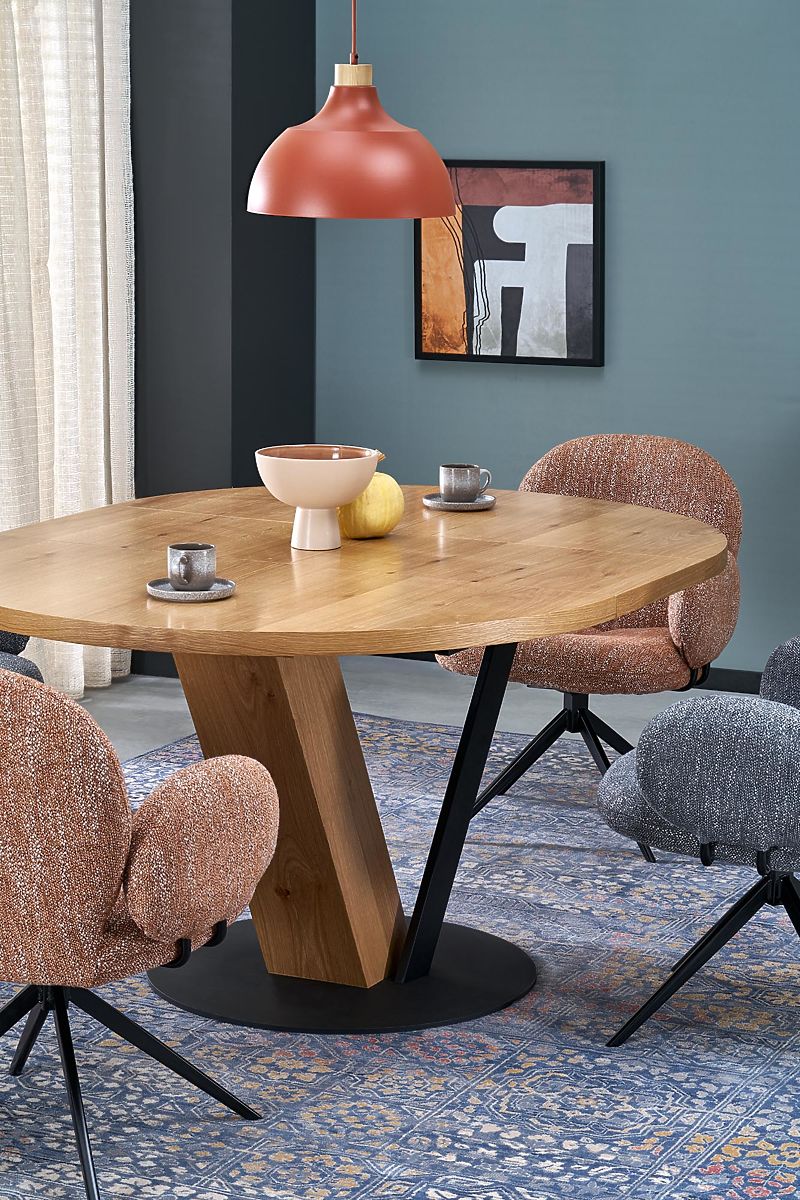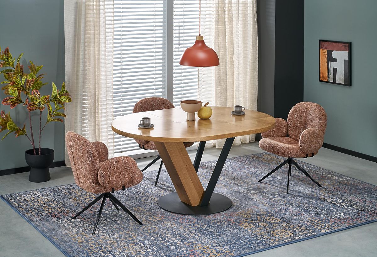 Otočná židle skořicové barvy z látky a oceli. .. více