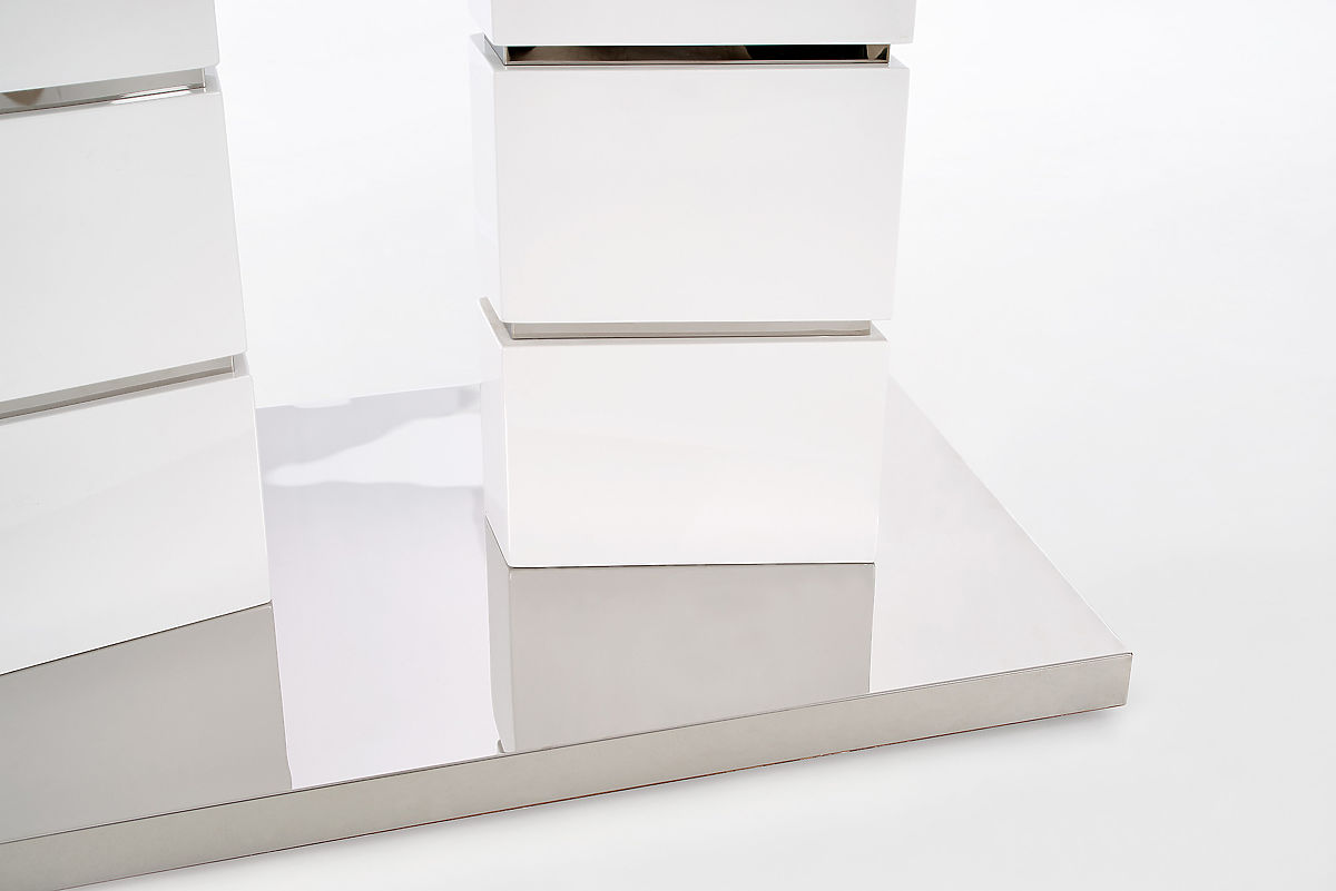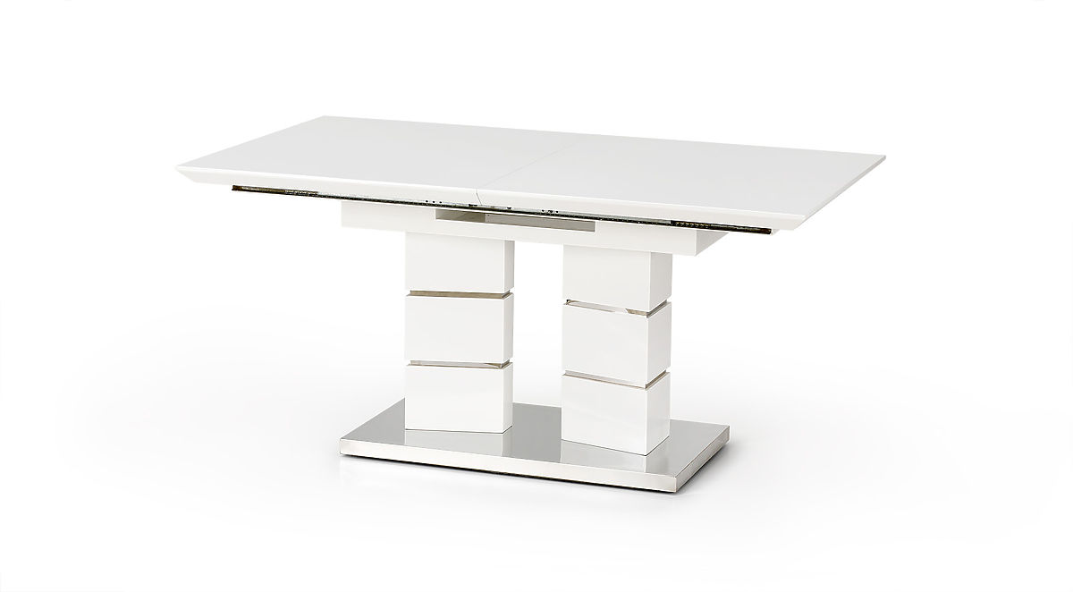 Rozkládací stůl z lakované MDF a nerezové oceli. .. více