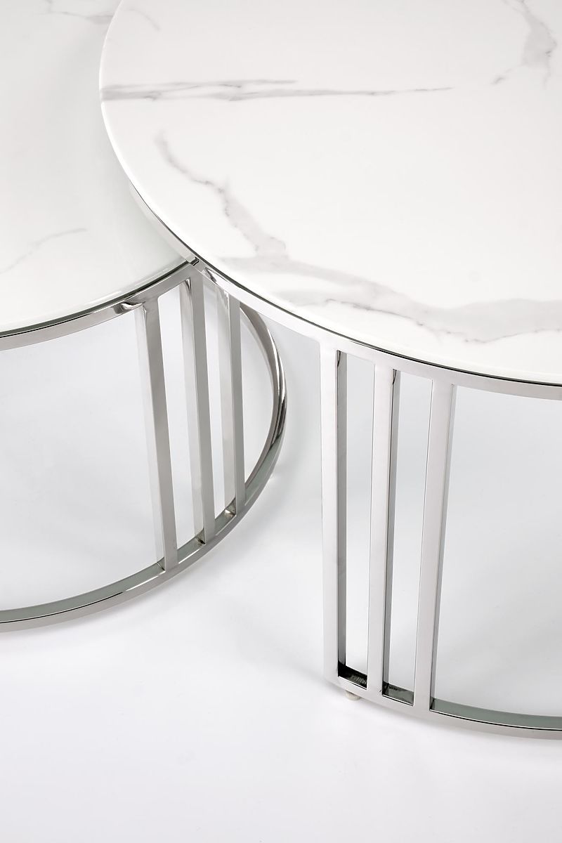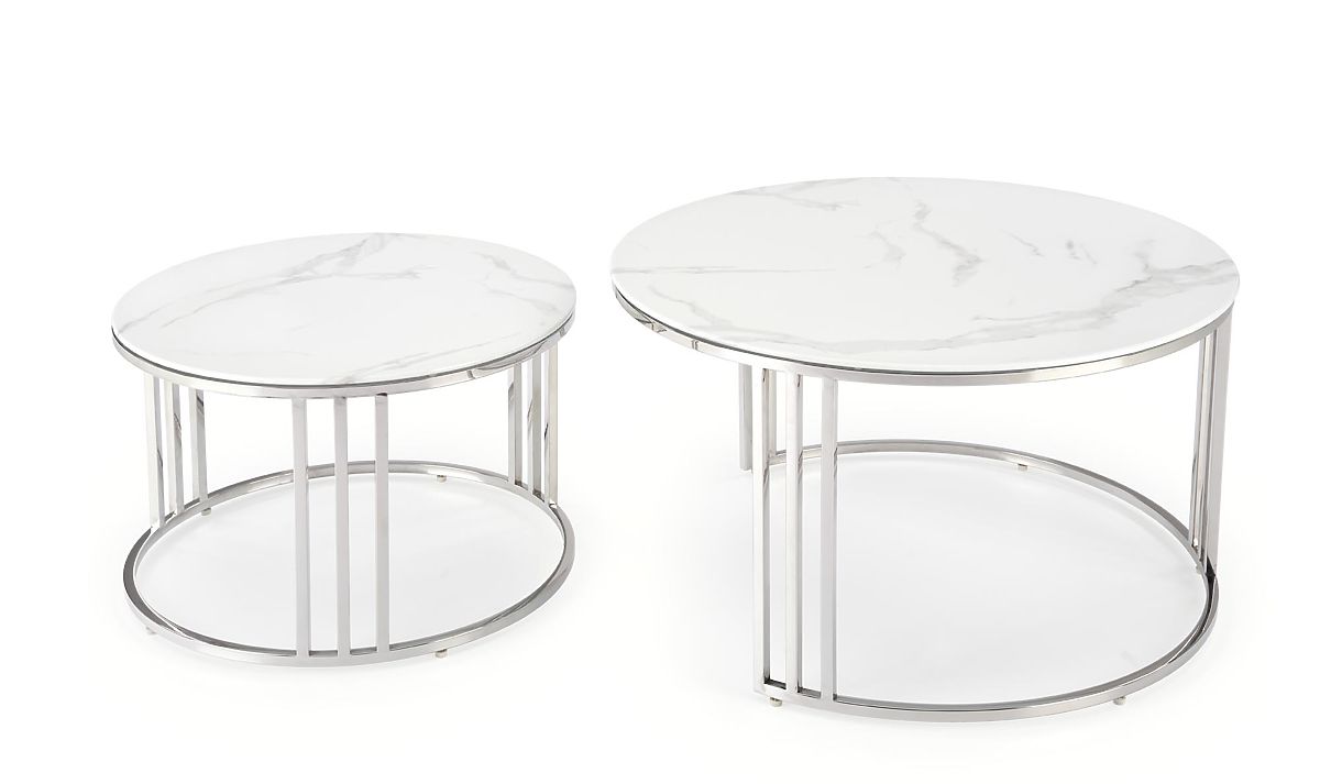 Lukafurniture.cz » Dům / Konferenční stolky / MERCURY 2 sada 2 lavic, rám - stříbrný, sklo - bílý mramor (1p=1ks)