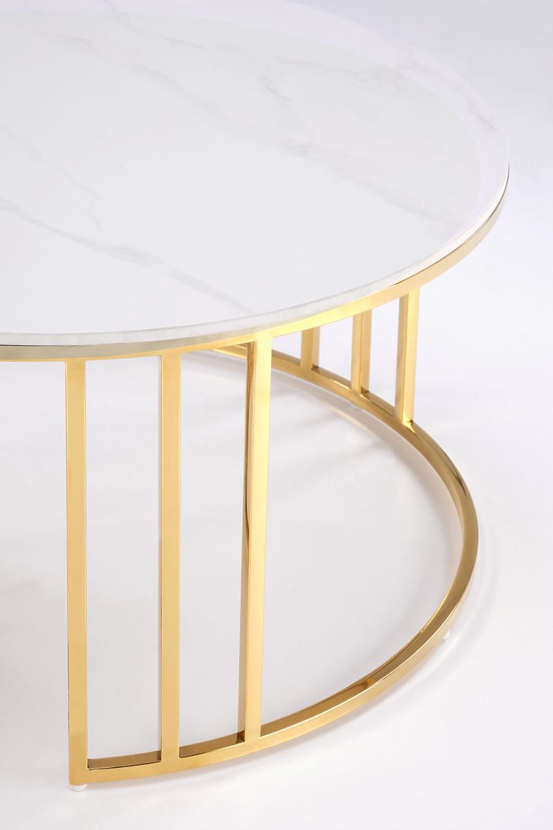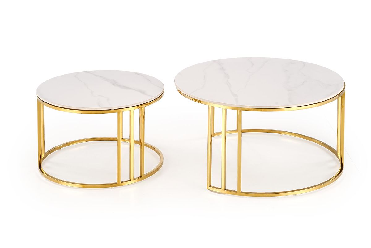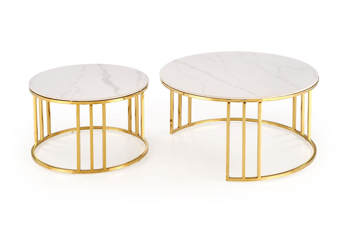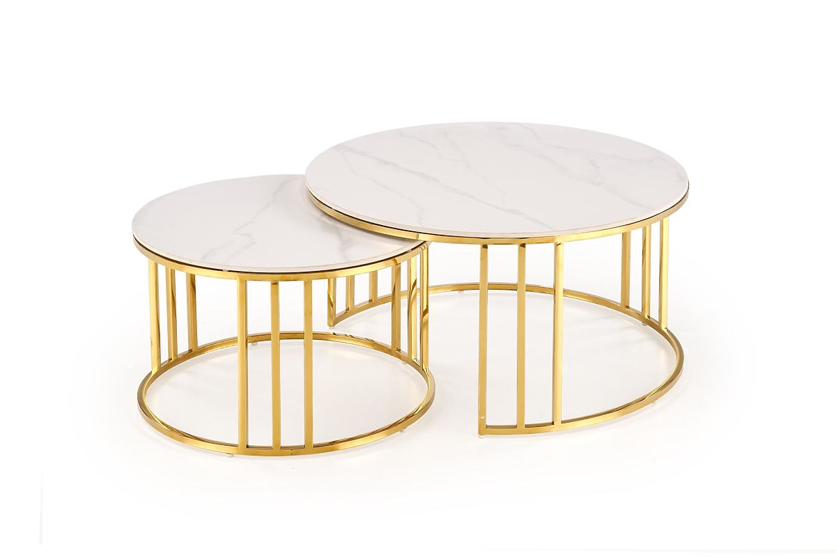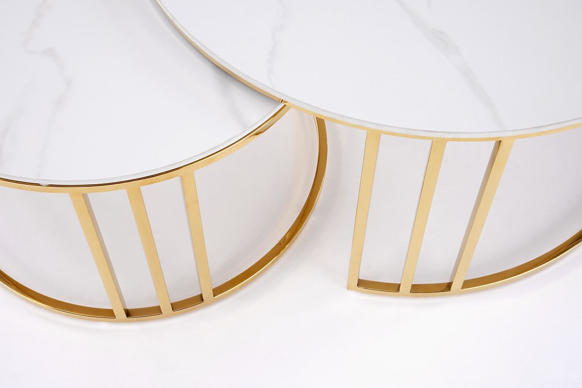Lukafurniture.cz » Stoly a stolky / Konferenční stolky / MERCURY 3 sada 2 lavic, sada 2 lavic, barva: bílý mramor / zlatá