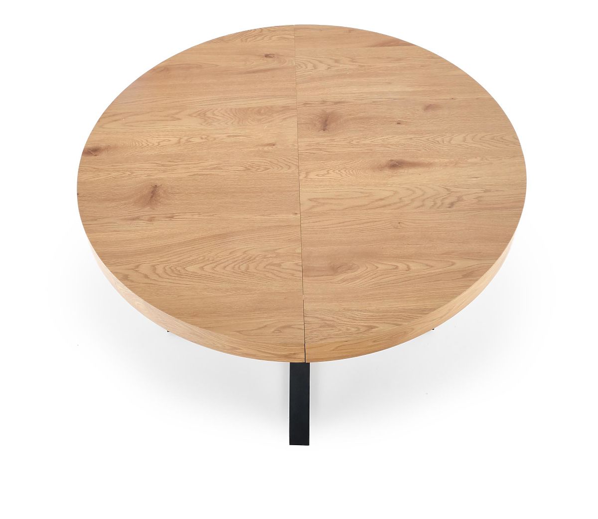 Rozkládací stůl s deskou ze zlatého dubu a černými nohami. .. více