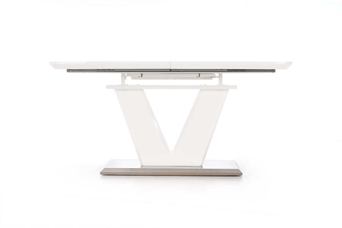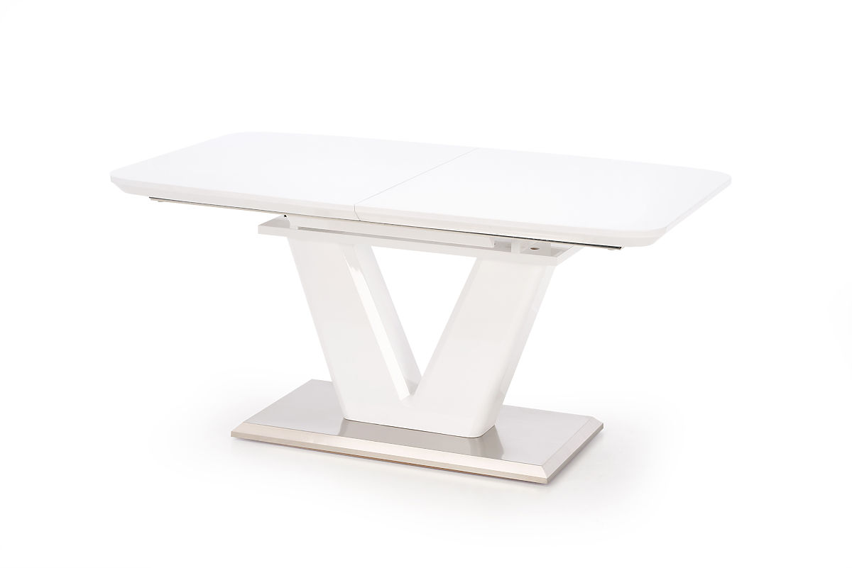 Rozkládací stůl z lakované MDF a nerezové oceli v bílé barvě. .. více
