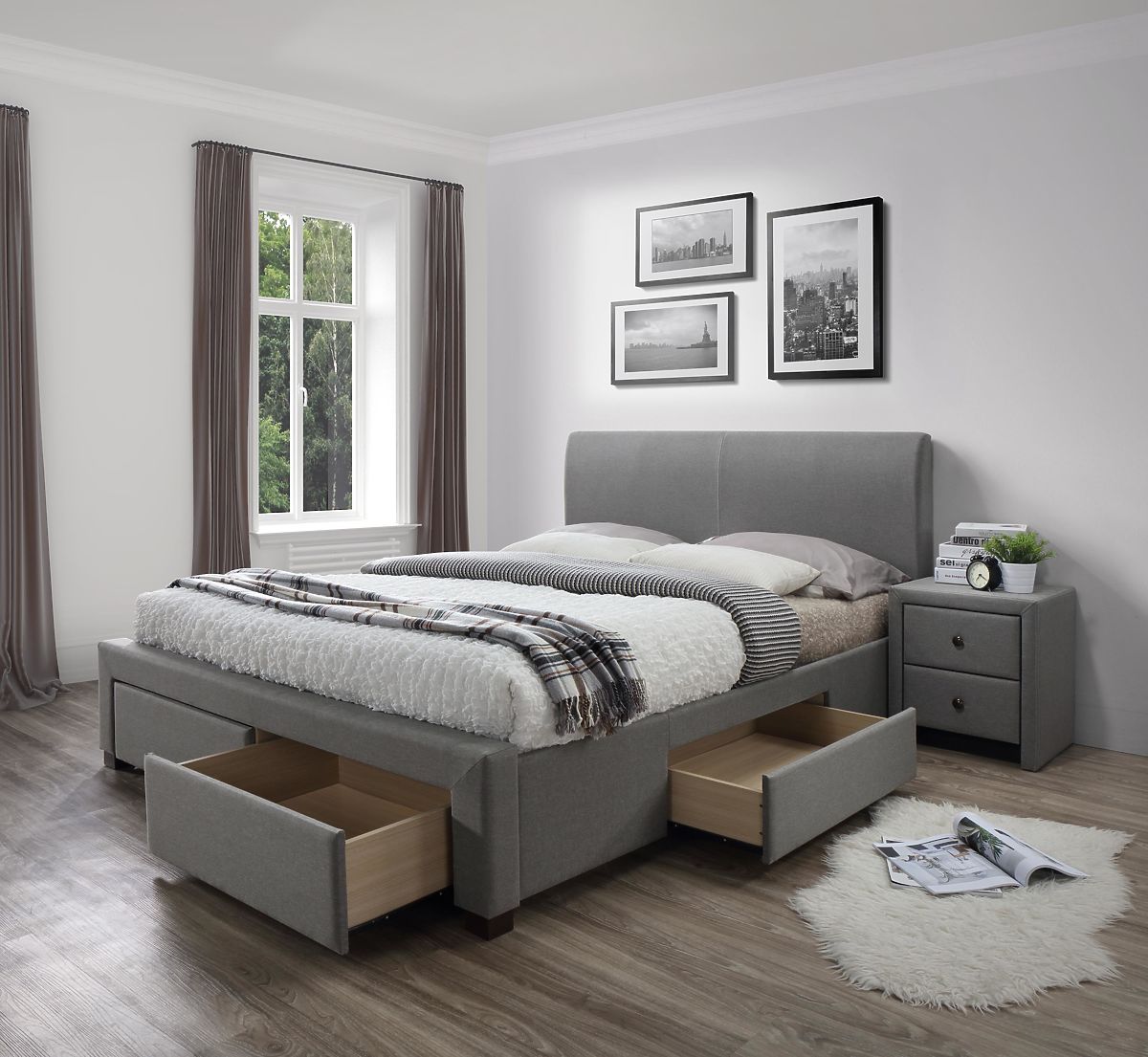 Lukafurniture.cz » Postele / Manželské postele / Postele 140x200 / Čalouněná postel MODENA 140 cm s šuplíky šedá (6p=1ks)