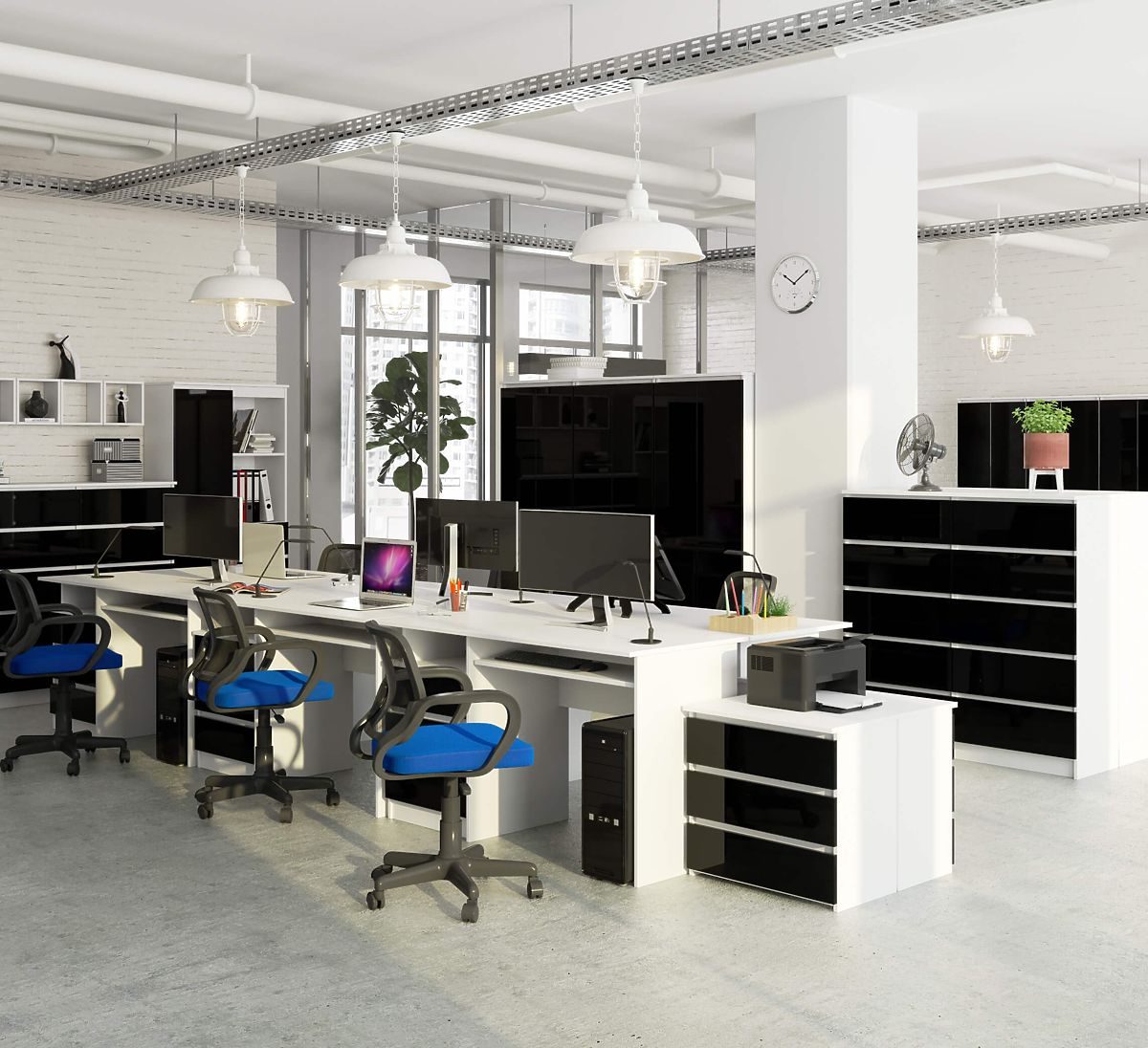 Psací stůl CLP s bílým korpusem a černým leskem, 135 cm dlouhý. .. více