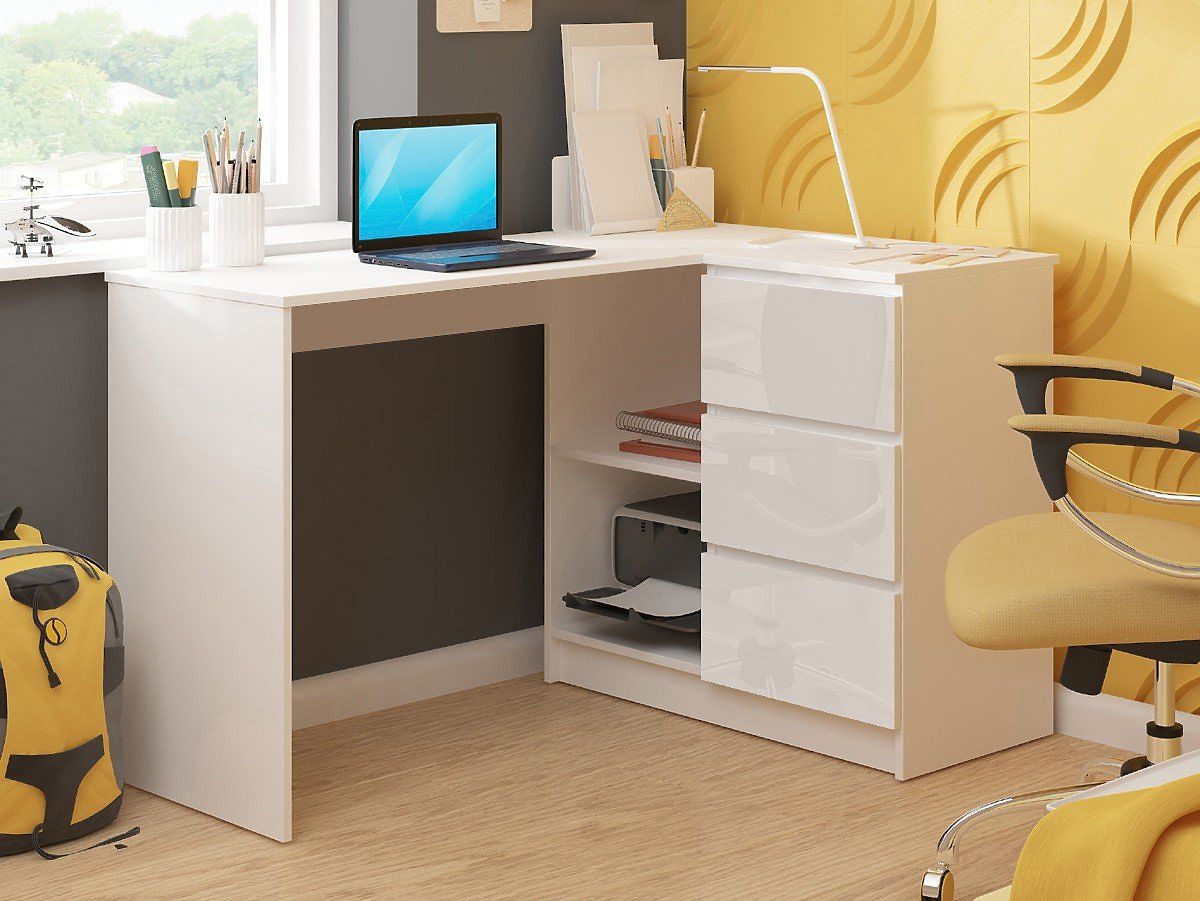 Lukafurniture.cz » Nábytek / Psací stoly / ROHOVÝ PSACÍ STŮL B16 124 cm PRAVÝ 3 ZÁSUVKY PK BÍLÝ / BÍLÝ LESK