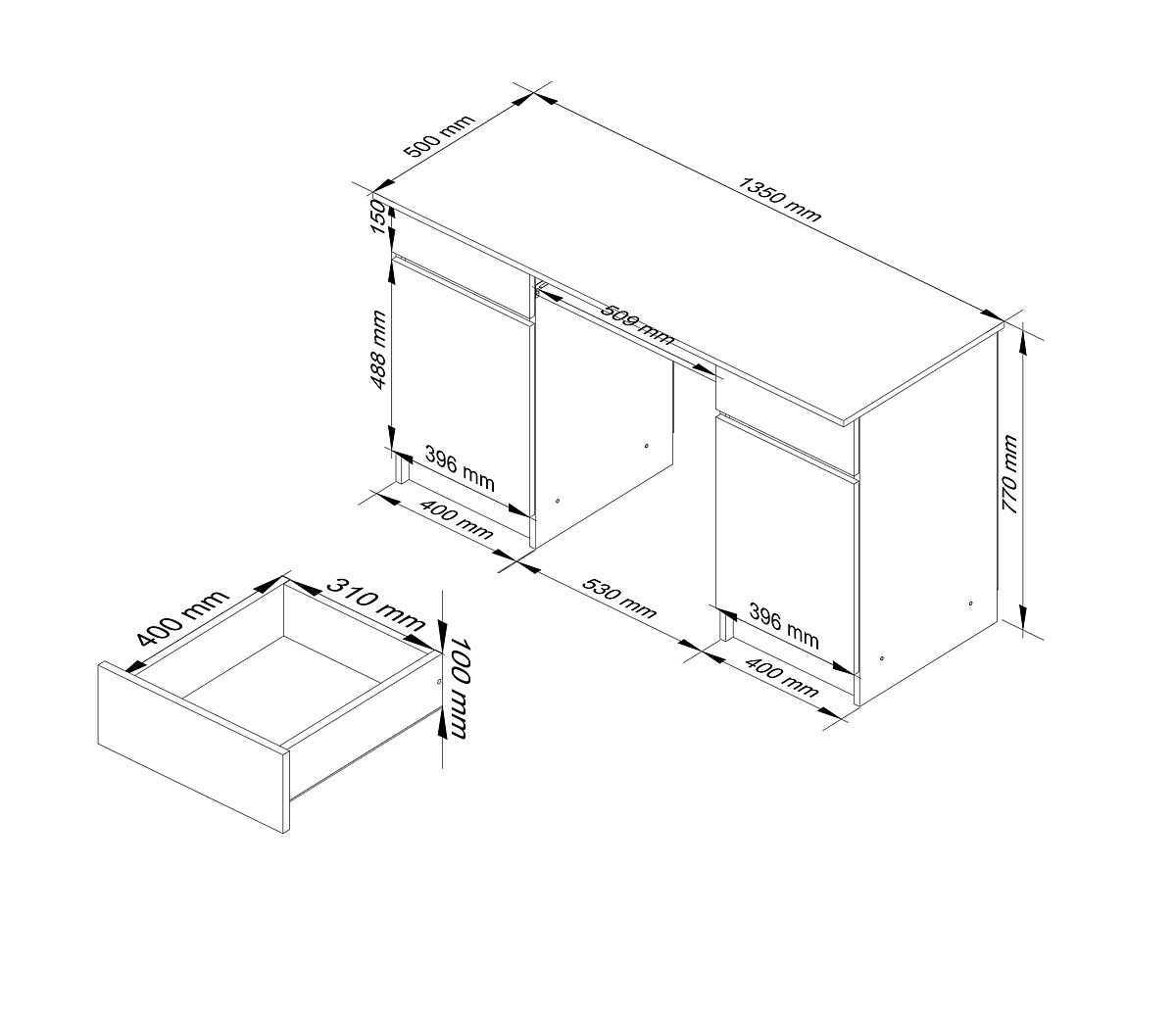 Počítačový stůl A5 o délce 135 centimetrů, který kombinuje dvě módní barvy (dub sonoma a bílá), je určen jak pro ty, kteří zařizují kancelář, tak pro domácí pracovnu, dětský nebo studentský pokoj.