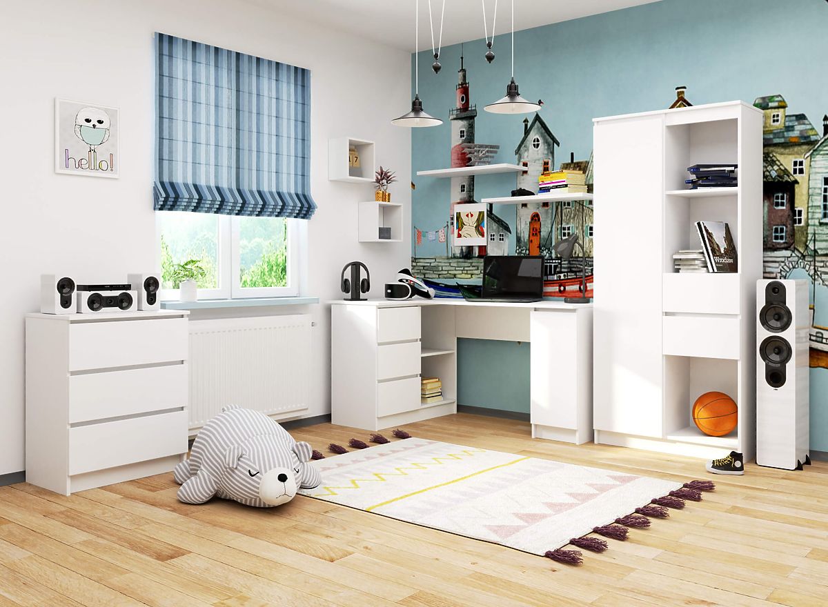 Levostranný rohový stůl je zajímavým řešením pro mnoho lidí, kteří se učí a pracují před obrazovkou počítače. Nábytek má rozměry 155 cm délky, 77 cm výšky a 85 cm hloubky. Materiál, ze kterého je vyroben, je vysoce kvalitní laminovaná deska, která se vyznačuje vysokou odolností proti oděru. Hrany stolu jsou opatřeny ABS hranou, díky čemuž jsou odolné proti poškození. Nábytek má tři zásuvky (posouvající se na kovových kuličkových pojezdech) a také police. Lze v nich ukládat kancelářské potřeby, dokumenty, šanony a dokonce i elektronická zařízení. Stůl umožňuje dokonalou organizaci pracovního nebo studijního prostoru. Skvěle se hodí do bytu nebo kanceláře. Stůl je bílé barvy. Jeho jednoduchost zajišťuje, že se dokonale hodí do minimalistických a moderních interiérů. Nábytek poskytuje velký komfort při práci a jistě bude sloužit mnoho let. Je třeba jej sestavit samostatně, k čemuž pomáhá přiložený návod.