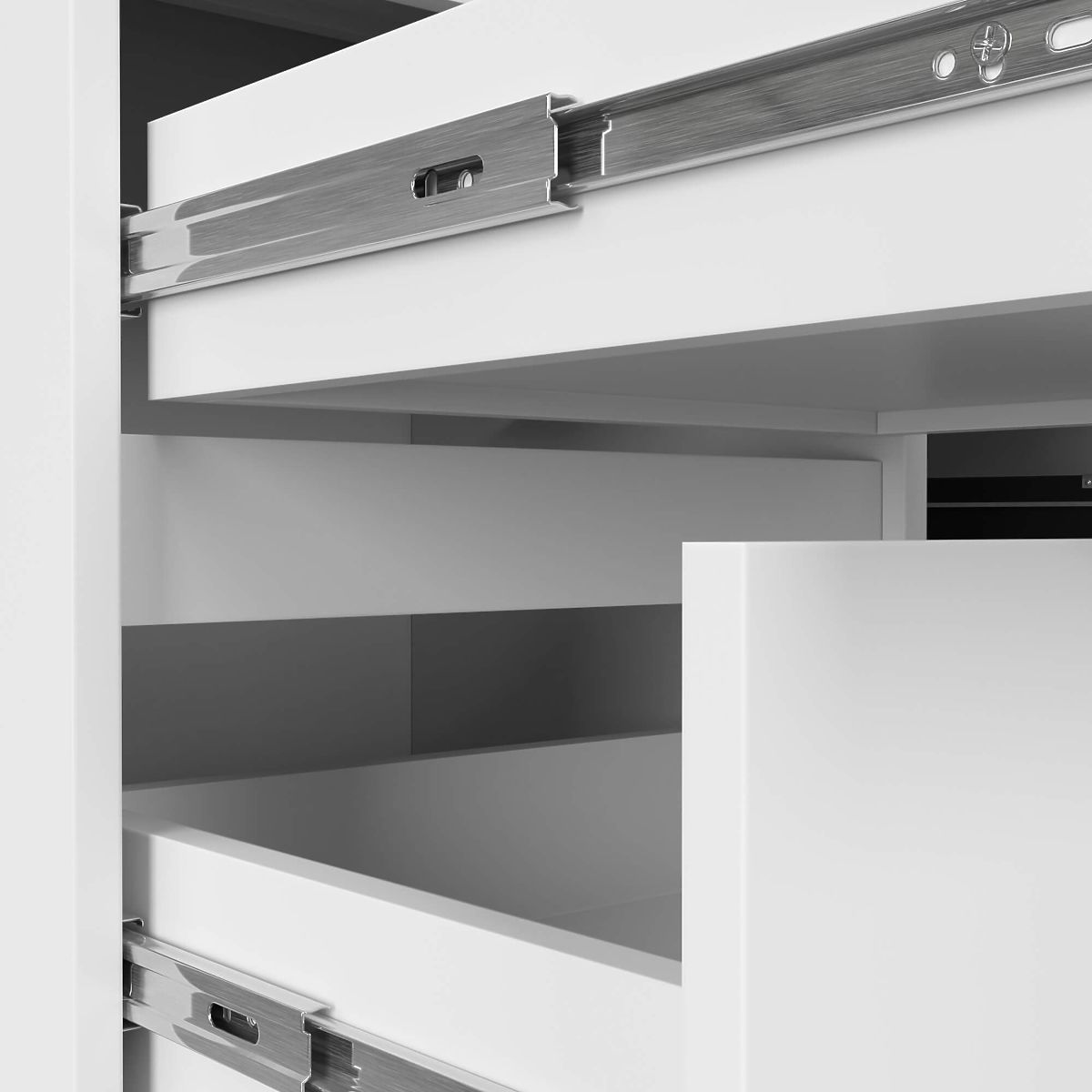 - Zásuvky se pohybují na kovových kuličkových pojezdech
