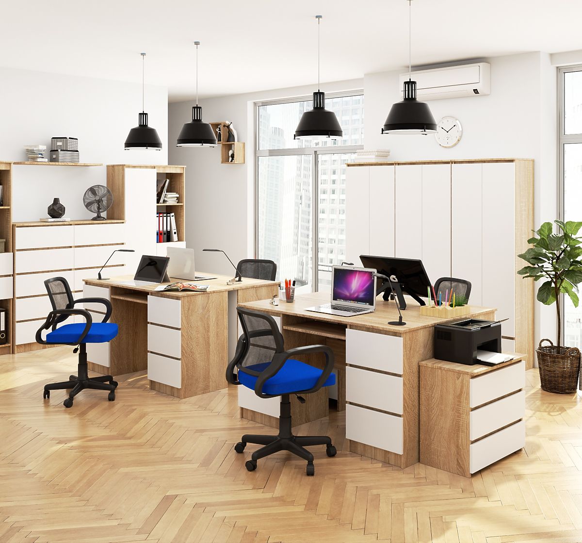 Psací stůl s šesti zásuvkami v barvě dub sonoma a bílá. .. více