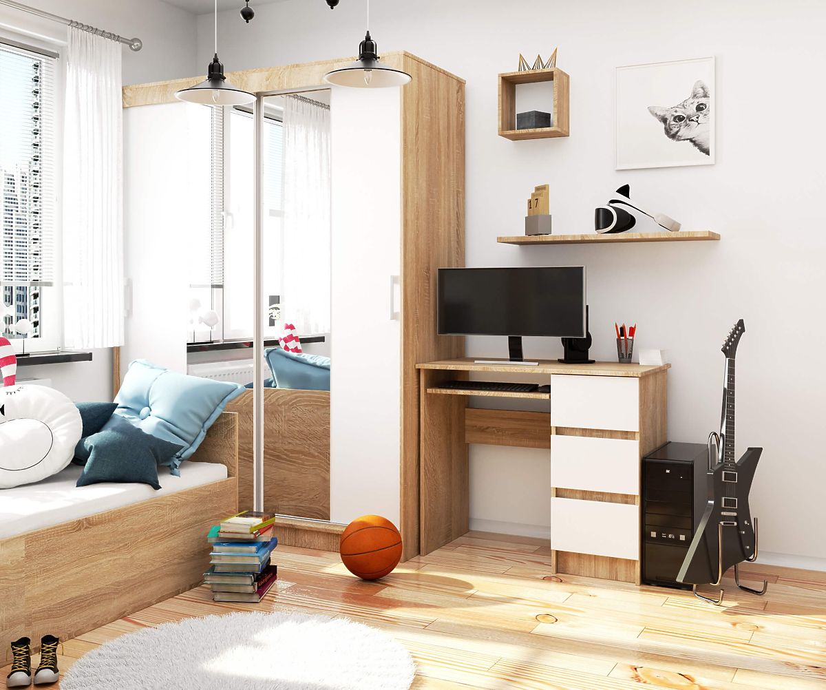 Stůl je nábytek, který nesmí chybět v žádném obývacím pokoji ani v pokoji pro mládež. Je praktický, zabírá málo místa a může sloužit jak pro práci nebo studium, tak i pro zábavu. Skvěle se hodí také do domácích kanceláří a kancelářských prostor. V naší nabídce najdete mnoho zajímavých stolů navržených funkčně a moderně. Jednou z možností je počítačový stůl A-6 (pravý), který splní očekávání i těch nejnáročnějších zákazníků. Je to vysoce kvalitní produkt, který vykazuje velkou odolnost proti poškození a případným škrábancům. Díky tomu může být používán v místnostech s vysokou frekvencí pohybu. Stůl obsahuje tři mimořádně prostorné zásuvky a také výsuvnou polici na kolečkových pojezdech. Celkově je udržován ve dvou módních a nadčasových barvách, kterými jsou dub sonoma a bílá.