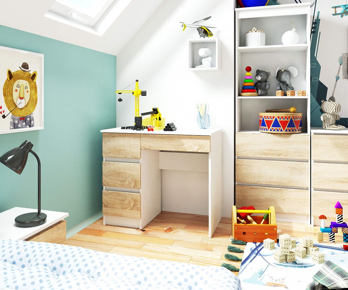 Psací stůl se čtyřmi zásuvkami pro mládež, kombinace bílé a sonoma. .. více
