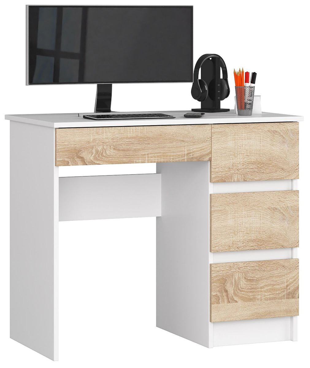 Počítačové stoly patří mezi nejčastěji hledaný nábytek. Není divu, když trávíme před obrazovkou počítače tolik času. Je tedy dobré vytvořit si doma koutek pro studium nebo práci. Pomoci může počítačový stůl A-7 70 cm v bílé barvě s čelními plochami v barvě sonoma. Jedná se o funkční a moderní nábytek, který se skvěle hodí do obývacího pokoje, dětského pokoje a kanceláře.