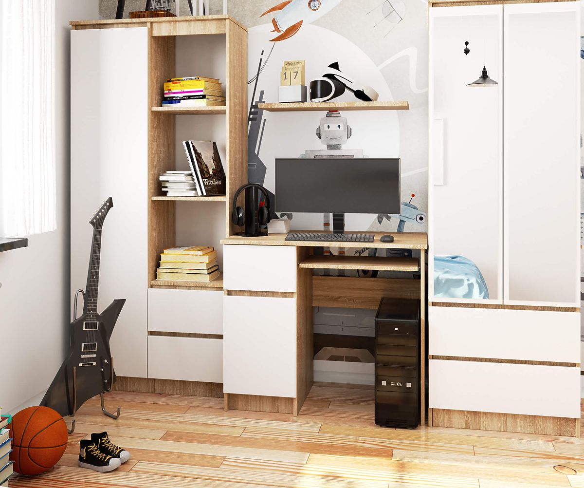 Stůl Pixel je malý stůl s velkým množstvím místa na nejpotřebnější věci do školy. Díky dvířkům pojme spoustu sešitů a knih. Stůl má délku 90 cm a skvěle se hodí do malých a středních místností.