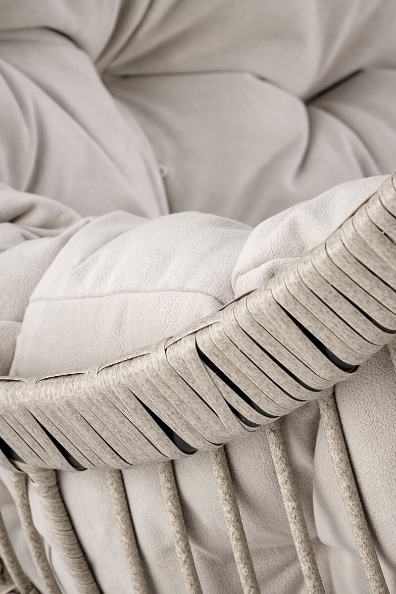 Velký měkký polštář objímá tělo a poskytuje pohodlné posezení, zatímco designová stříška chrání před sluncem i deštěm, takže si můžete užít relaxaci kdykoli. Stabilní konstrukce z práškově lakované oceli a odolný syntetický ratan zaručují dlouhou životnost i při venkovním použití.