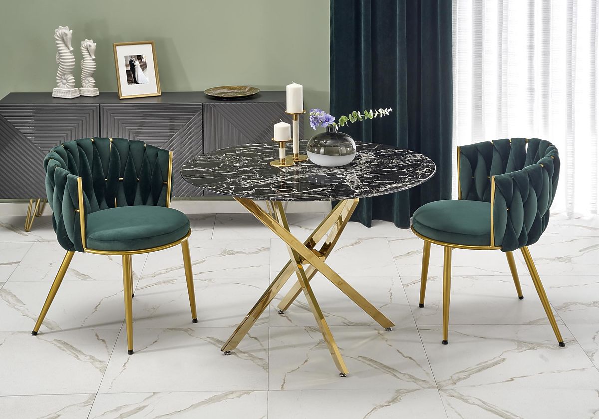 Lukafurniture.cz » Jídelna a kuchyně / Jídelní stoly / RAYMOND 2 stůl, deska - černý mramor, nohy - zlaté (2p=1ks)