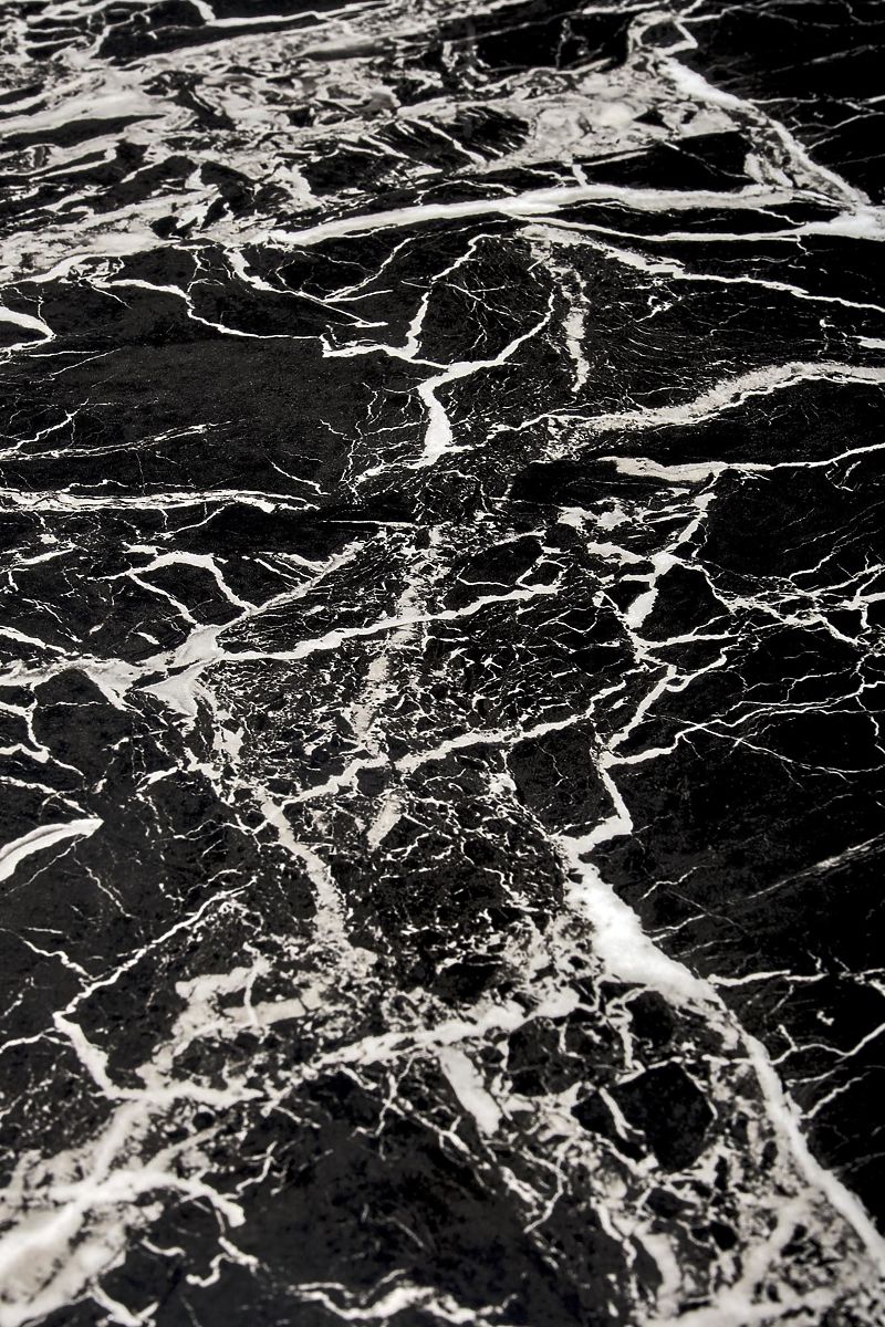 Stůl s černým mramorovým povrchem a zlatými nohami. .. více