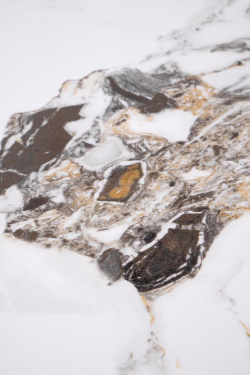 Konferenční stolek z bílého a šedého mramoru se zlatými detaily. .. více