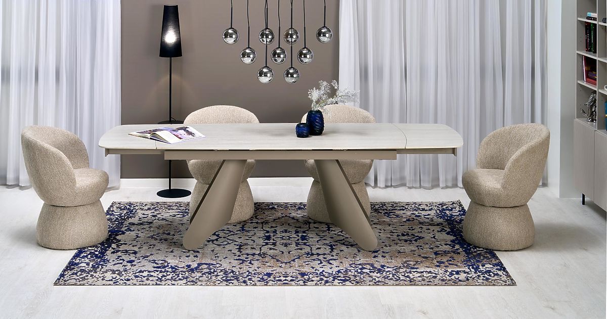 Lukafurniture.cz » Jídelna a kuchyně / Jídelní stoly / Rozkládací stůl SALIX, travertin / kašmír (2p=1ks)