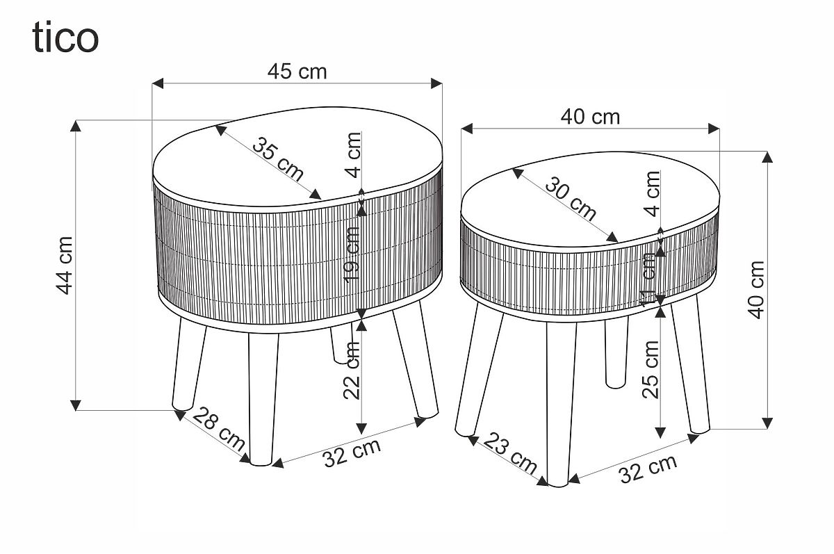 Sada dvou taburetů TICO představuje elegantní a praktické řešení pro moderní i útulně laděné interiéry. Díky svému jemnému oválnému tvaru, přírodnímu dřevu a béžovému čalounění působí harmonicky a nadčasově, a snadno se tak stane stylovým doplňkem obývacího pokoje, ložnice i předsíně.Taburety jsou čalouněny příjemnou látkou v béžovém odstínu, která dodává prostoru teplo a měkkost. Stabilní konstrukce z masivního kaučukového dřeva v přírodním provedení zajišťuje pevnost a dlouhou životnost. Každý taburet je navíc vybaven praktickým úložným prostorem, ideálním pro uložení dek, polštářů, drobností nebo domácích doplňků.Díky rozdílným rozměrům lze taburety používat samostatně nebo je prakticky kombinovat podle aktuálních potřeb. Skvěle poslouží jako přídavné sezení, podnožka nebo dekorativní prvek interiéru. Dodávány jsou v demontovaném stavu pro snadnou manipulaci.