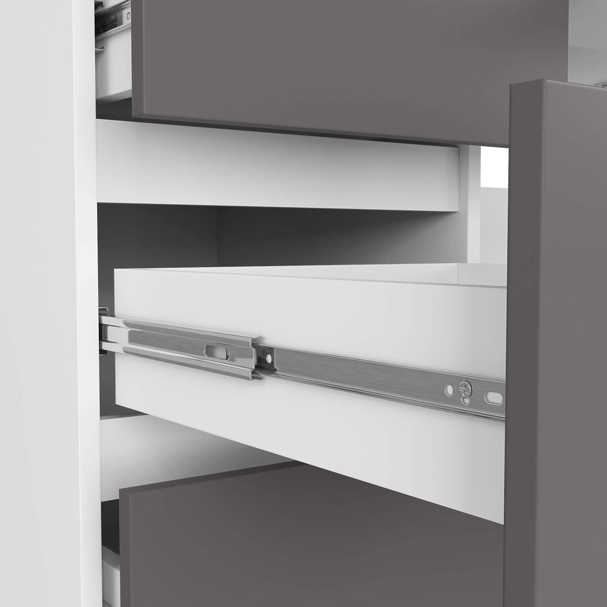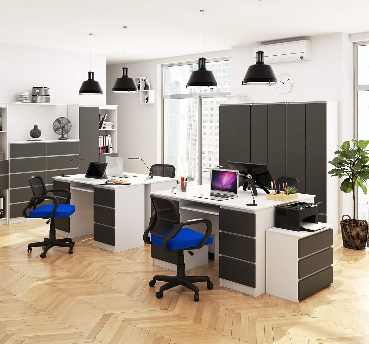Ať už pracujete v kanceláři nebo na dálku, trávíte u stolu alespoň několik hodin denně. Dobře víte, že výběr tohoto nábytku výrazně ovlivňuje pohodlí vaší práce. V této roli se skvěle osvědčí počítačový stůl A-11. Má až 6 prostorných zásuvek o hloubce 34,5 cm, do kterých snadno uložíte všechny dokumenty a vybavení. Stůl má také výsuvnou polici, na kterou pohodlně umístíte klávesnici nebo schováte nejdůležitější poznámky. Klasická kombinace bílé a grafitově šedé bude skvěle ladit s jednoduchými, elegantními kancelářemi.