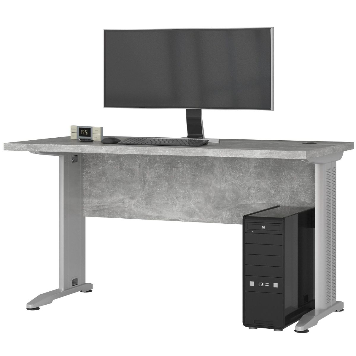 Volně stojící stůl BM-135 v betonové barvě je ideálním řešením pro počítačové pracoviště v každém domě nebo kanceláři. Nábytek je vyroben z laminované desky o tloušťce 32 milimetrů, která je odolná a odolná proti oděru. Viditelné hrany stolu jsou opatřeny ABS hranou, která se také vyznačuje vysokou odolností proti poškození. Matná deska a záda skvěle ladí s kovovými nohami. Pokud hledáte návrh s velkou pracovní plochou, doporučujeme prozkoumat naši nabídku. Zaručujeme nejvyšší kvalitu, funkčnost, moderní design a příznivou cenu. Ke stolu můžete přizpůsobit další kancelářský nábytek dostupný v našem internetovém obchodě. Doufáme, že splní očekávání i těch nejnáročnějších zákazníků. Stůl je snadno čistitelný a jeho jednoduchá a zároveň elegantní forma činí nábytek nadčasovým a univerzálním.