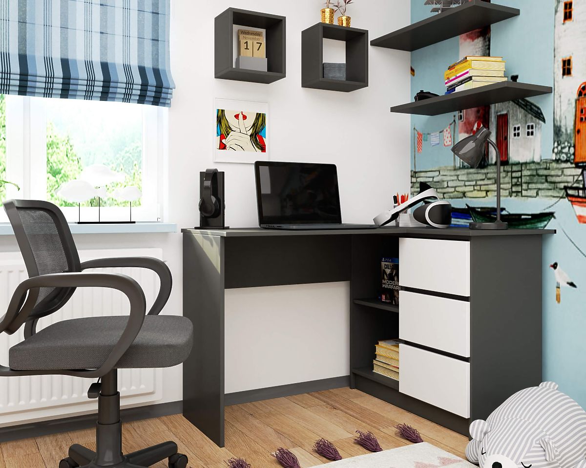 V domech, bytech a kancelářích jsou stále častěji k vidění rohové stoly. Nejenže jsou módní, ale také funkční. Lidé, kteří hledají nábytek v šedém odstínu s bílými čely, mohou zvolit rohový stůl B16 o šířce 124 cm. Skvěle se hodí pro studium nebo pracovní povinnosti a zároveň má moderní vzhled. Obsahuje police a zásuvky, do kterých lze umístit dokumenty, knihy, kancelářské potřeby a mnoho dalšího. Nábytek se vyznačuje trvanlivostí. Je určen k samostatné montáži, což není obtížné, protože ke každé objednávce je přiložen návod.