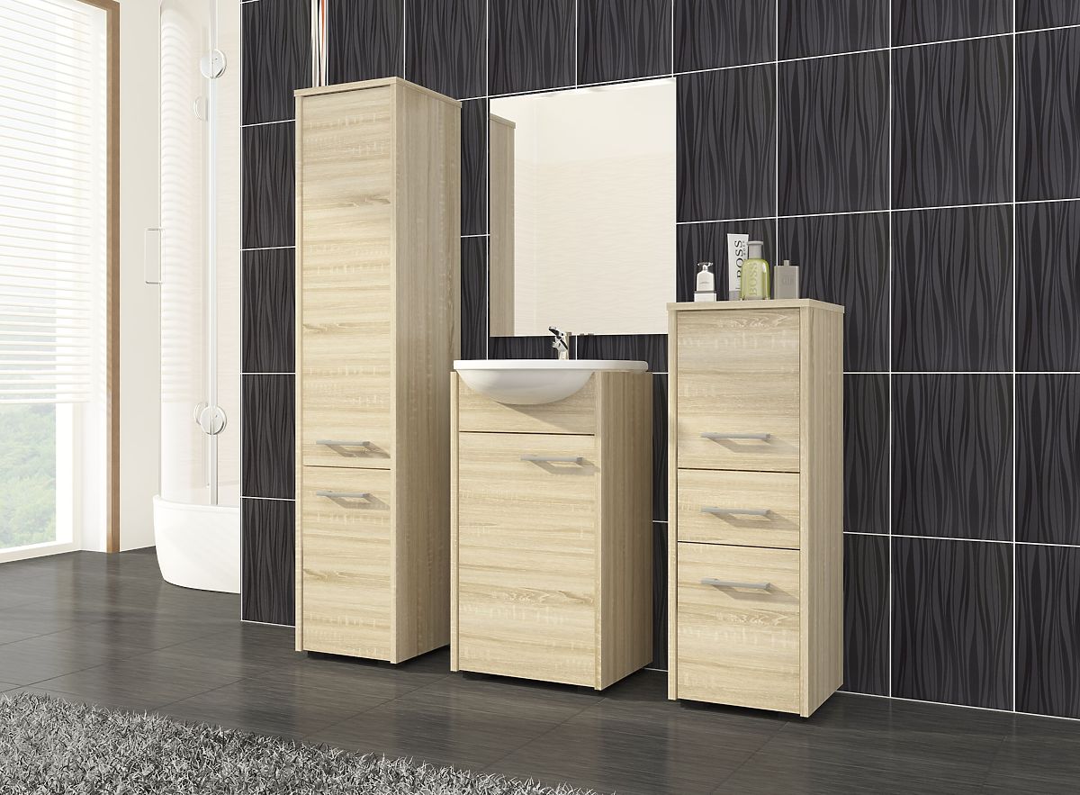 Univerzální koupelnová skříňka s elegantním designem a barvou dub sonoma. .. více