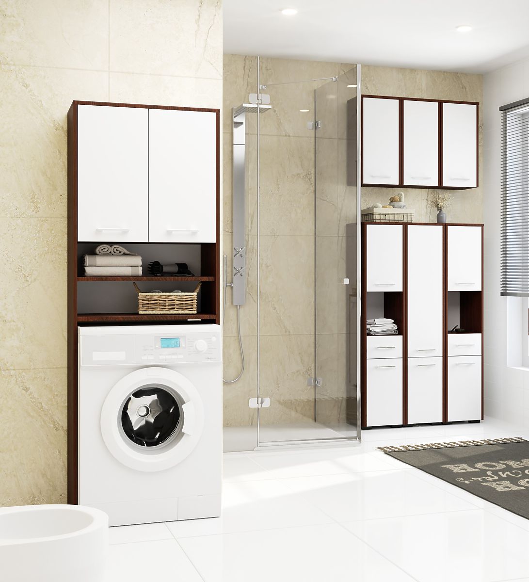 Lukafurniture.cz » Koupelna a WC / Koupelnové skříňky / KOUPELNA SKŘÍŇKA FIN NAD PRAČKU WENGE / BÍLÁ