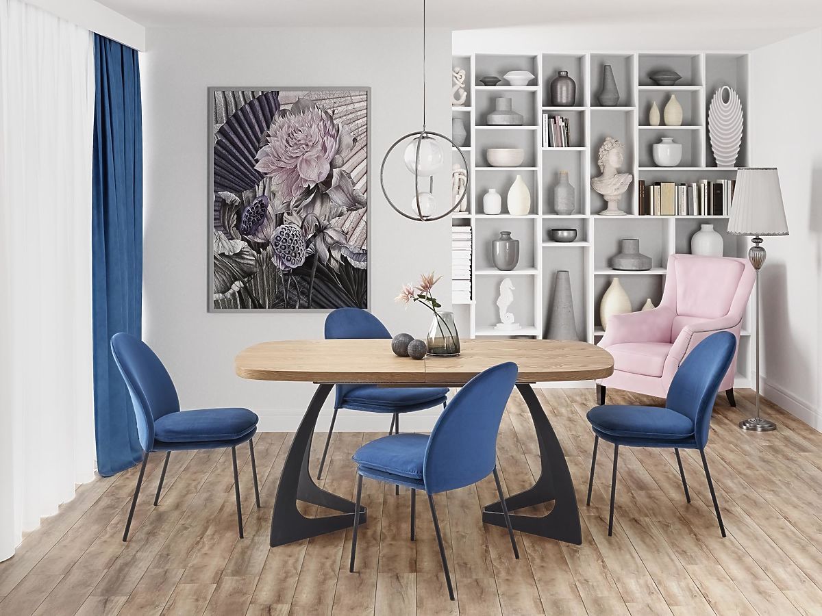Moderní rozkládací jídelní stůl Veldon zaujme svým elegantním a nadčasovým designem, který se stane přirozeným středobodem každé jídelny. Díky kombinaci kovové konstrukce a kvalitní MDF desky s přírodní dubovou dýhou působí stůl moderně, ale zároveň hřejivě. Oválný tvar desky podporuje pohodlné a příjemné stolování s rodinou i přáteli.
