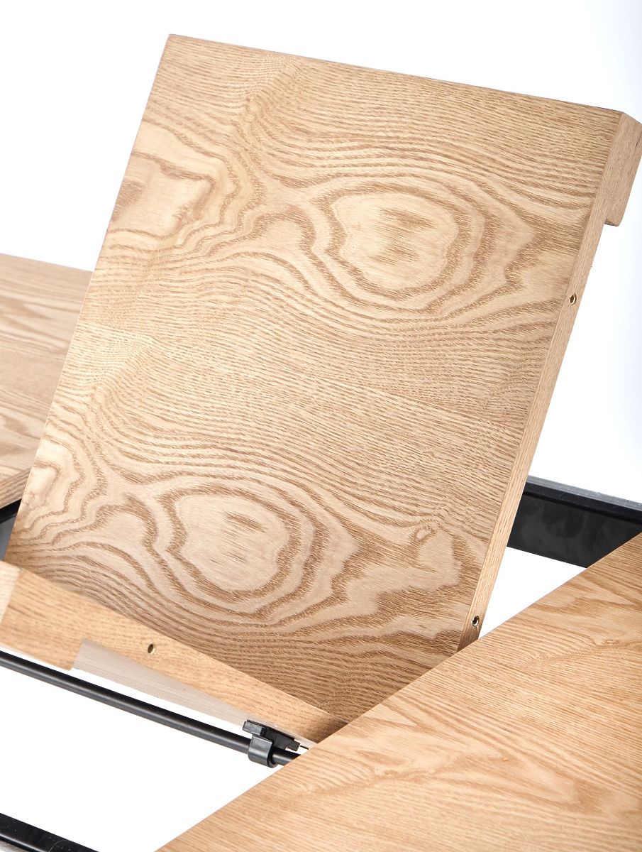 Rozkládací stůl s přírodní dubovou deskou a černými nohami. .. více