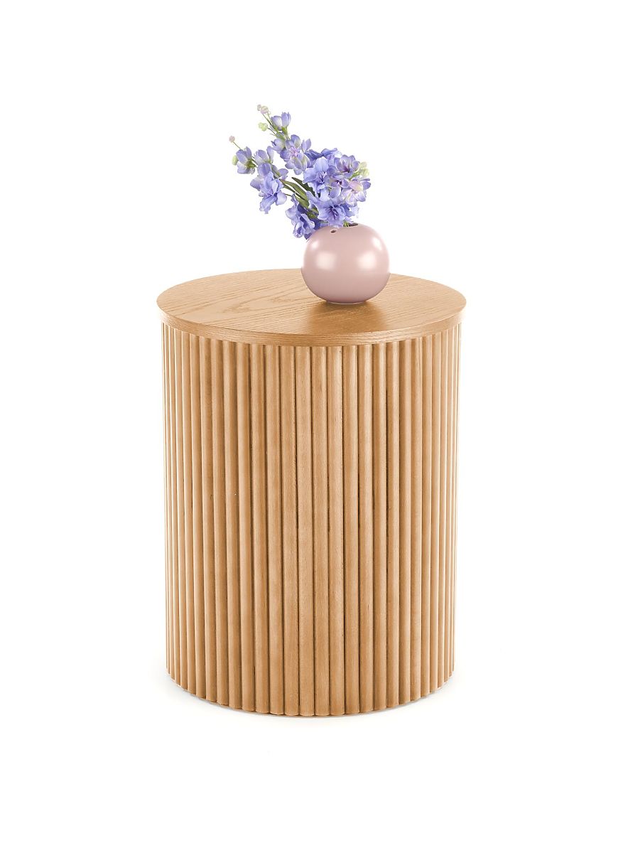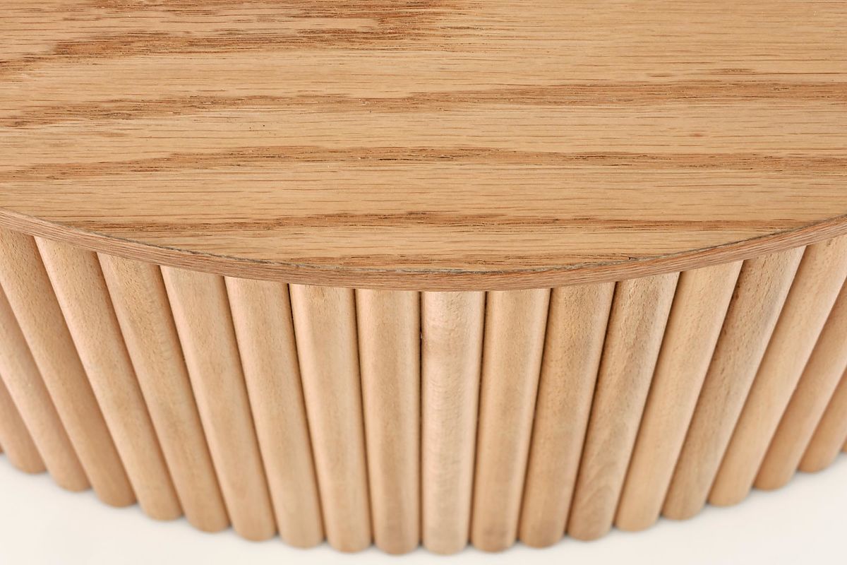 Kulatý konferenční stolek Woody vnese do vašeho obývacího pokoje, kanceláře či lobby kousek přírody a teplé atmosféry. Jeho design spojuje nadčasovost přírodních materiálů s moderním zpracováním, takže perfektně zapadne jak do moderních, tak i klasických interiérů. Robustní kruhová deska o průměru 80 cm je vyrobena z kvalitních MDF desek potažených přírodní dýhou, která zvýrazňuje krásnou kresbu dřeva. Podnož je tvořena masivním dřevem, což stolku dodává stabilitu, pevnost a odolnost pro každodenní používání. Stolek vám navíc dorazí již smontovaný, takže ho stačí jen vybalit a ihned začít používat.