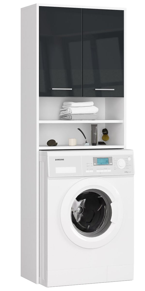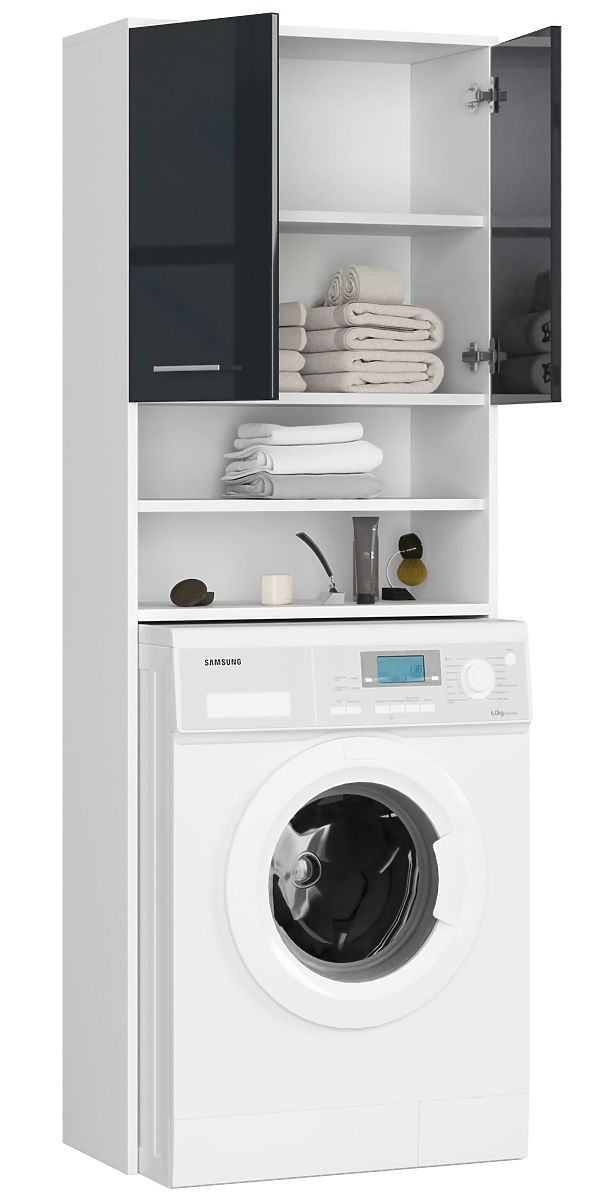 Lukafurniture.cz » Koupelna a WC / Koupelnové skříňky / KOUPELNA REGÁL FIN NAD PRAČKU BÍLÝ / GRAFIT LESK