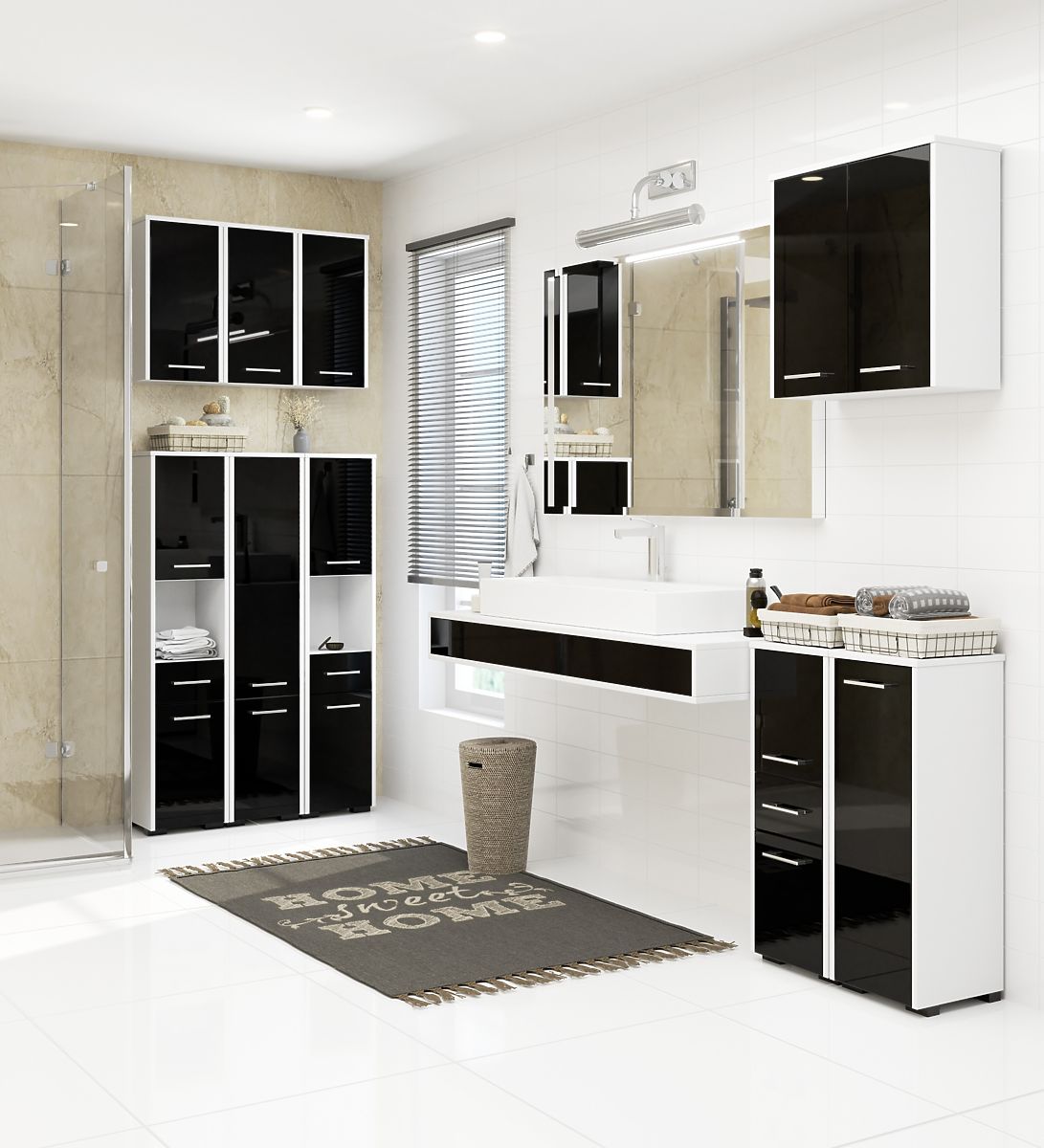 Koupelnový regál FIN s černým leskem a bílým tělem. .. více