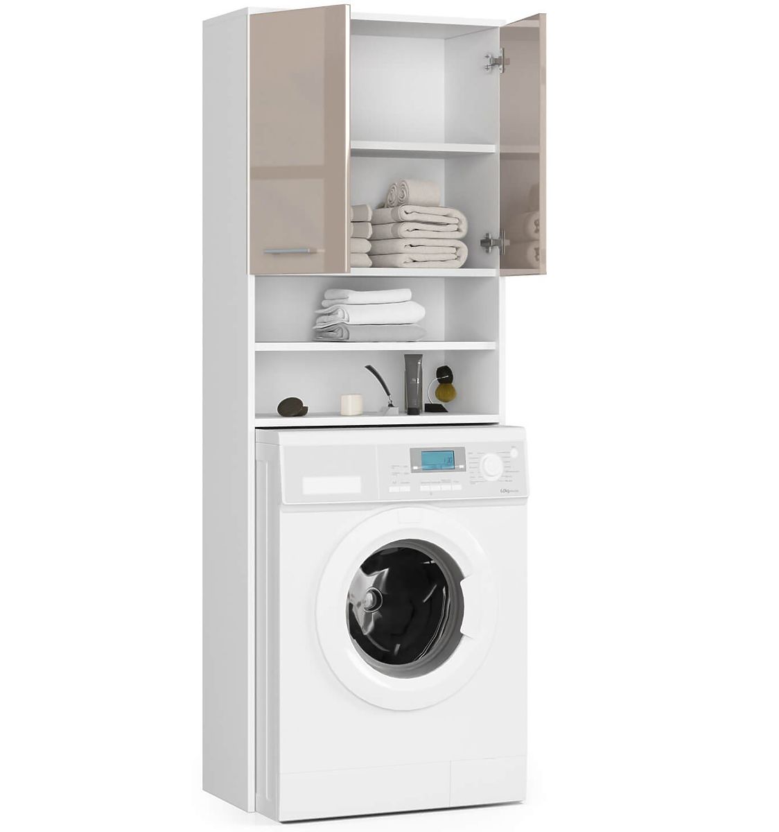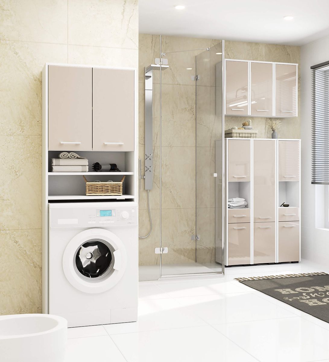 Lukafurniture.cz » Koupelna a WC / Koupelnové skříňky / Koupelnová skříňka FIN nad pračku - bílá-cappuccino lesk - 2 dveře