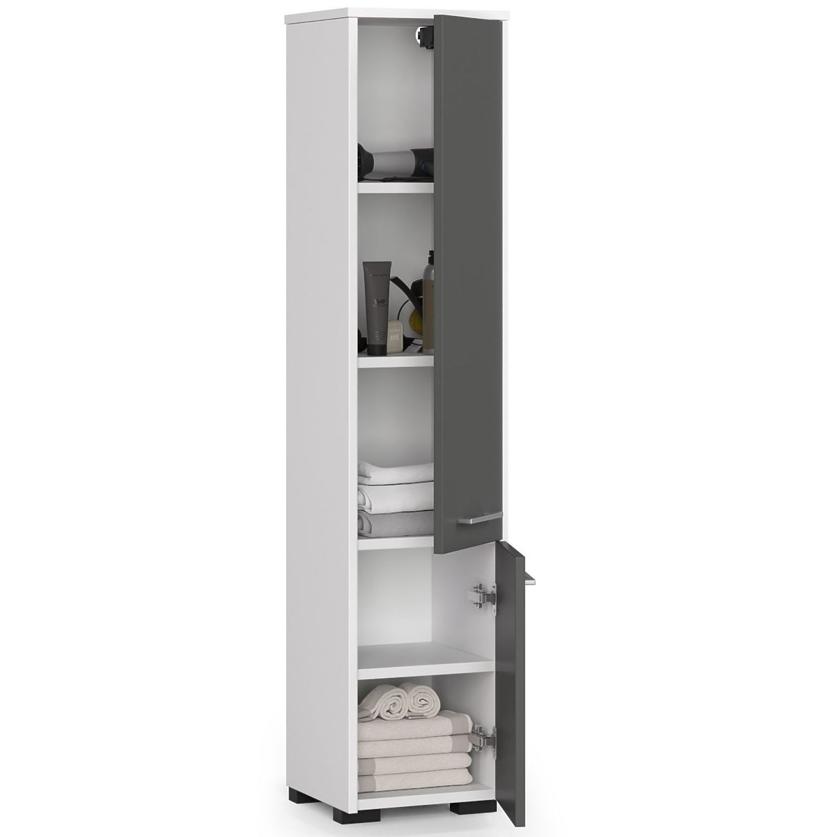 Koupelnová skříňka s 2 dveřmi a 5 policemi, bílá a grafitově šedá. .. více